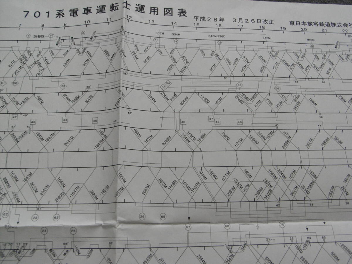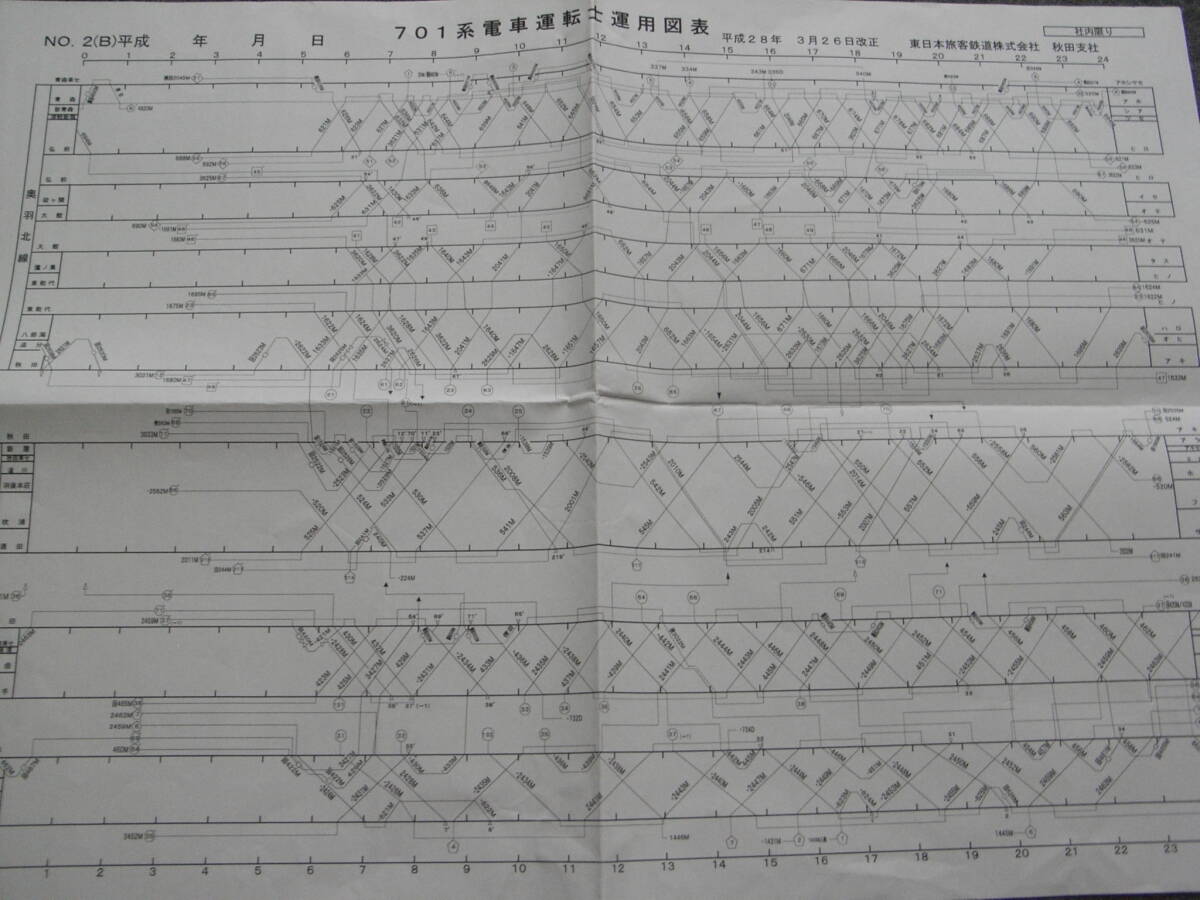 701系電車運転士運用図表 平成28年3月26日改正 東日本旅客鉄道株式会社 秋田支社 2016年・JR東日本