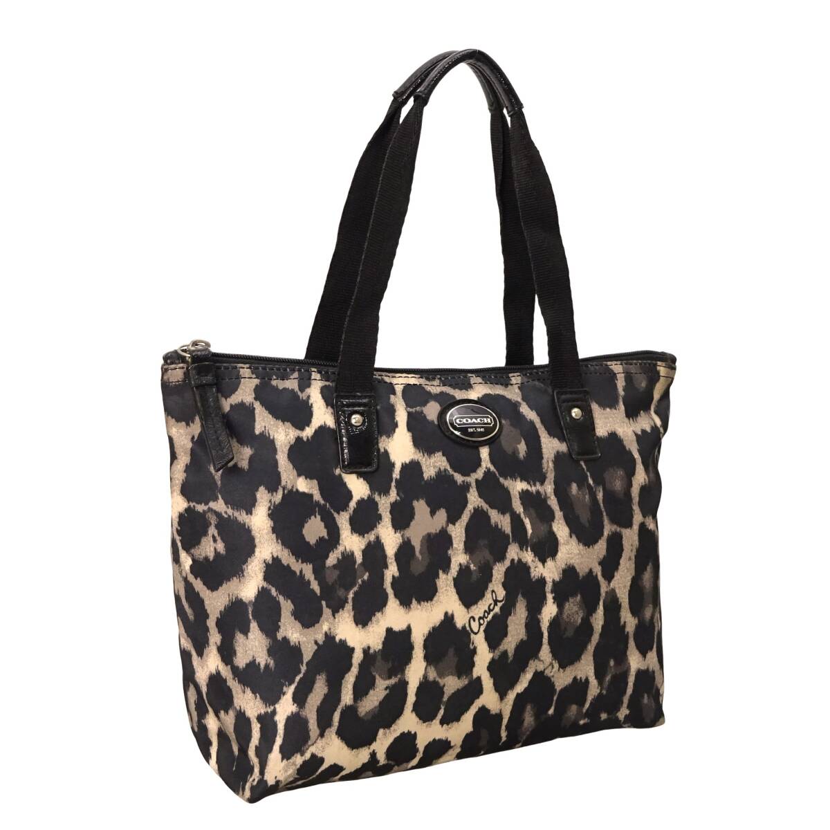 本物■コーチ■レオパード ミニ トート ベージュ ブラック ハンドバッグ ミニトートバッグ /600901