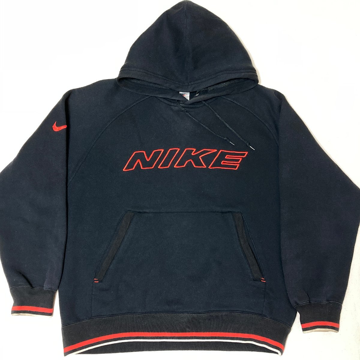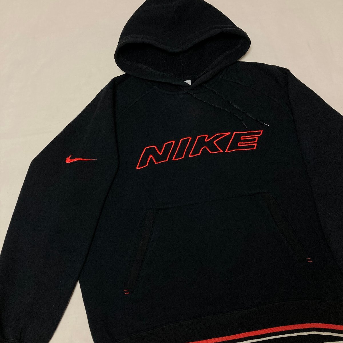 90s ヴィンテージ ロゴ刺繍 スウェット パーカー ブラック/黒 L【NIKE】