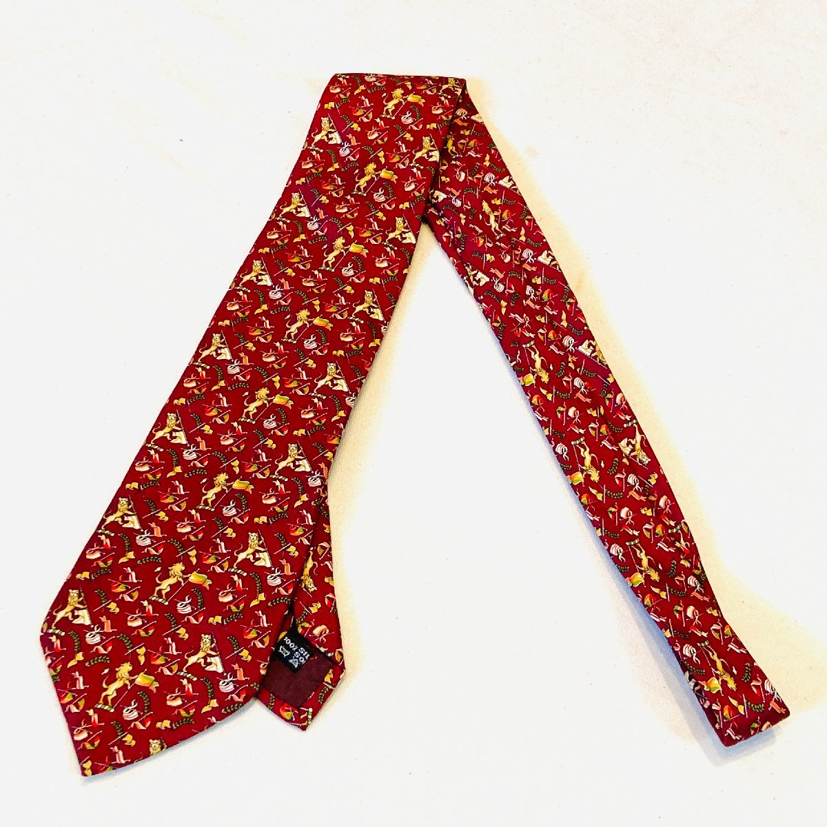 Salvatore Ferragamo サルヴァトーレフェラガモ イタリア製 絹 シルク SILK 100% 高級 ネクタイ ボルドー系 総柄 ライオン 獅子