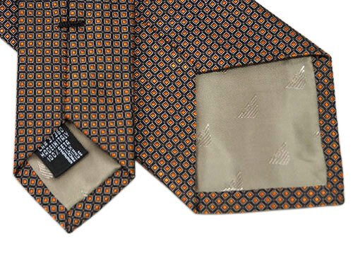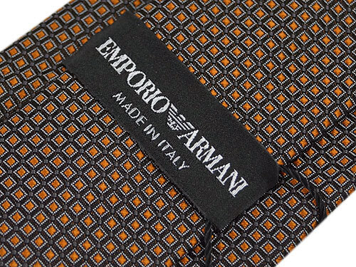 アルマーニ ブランド ネクタイ エンポリオ アルマーニ 高級 シルク 100% ブロック 格子 オレンジ ブラック 橙色 29075