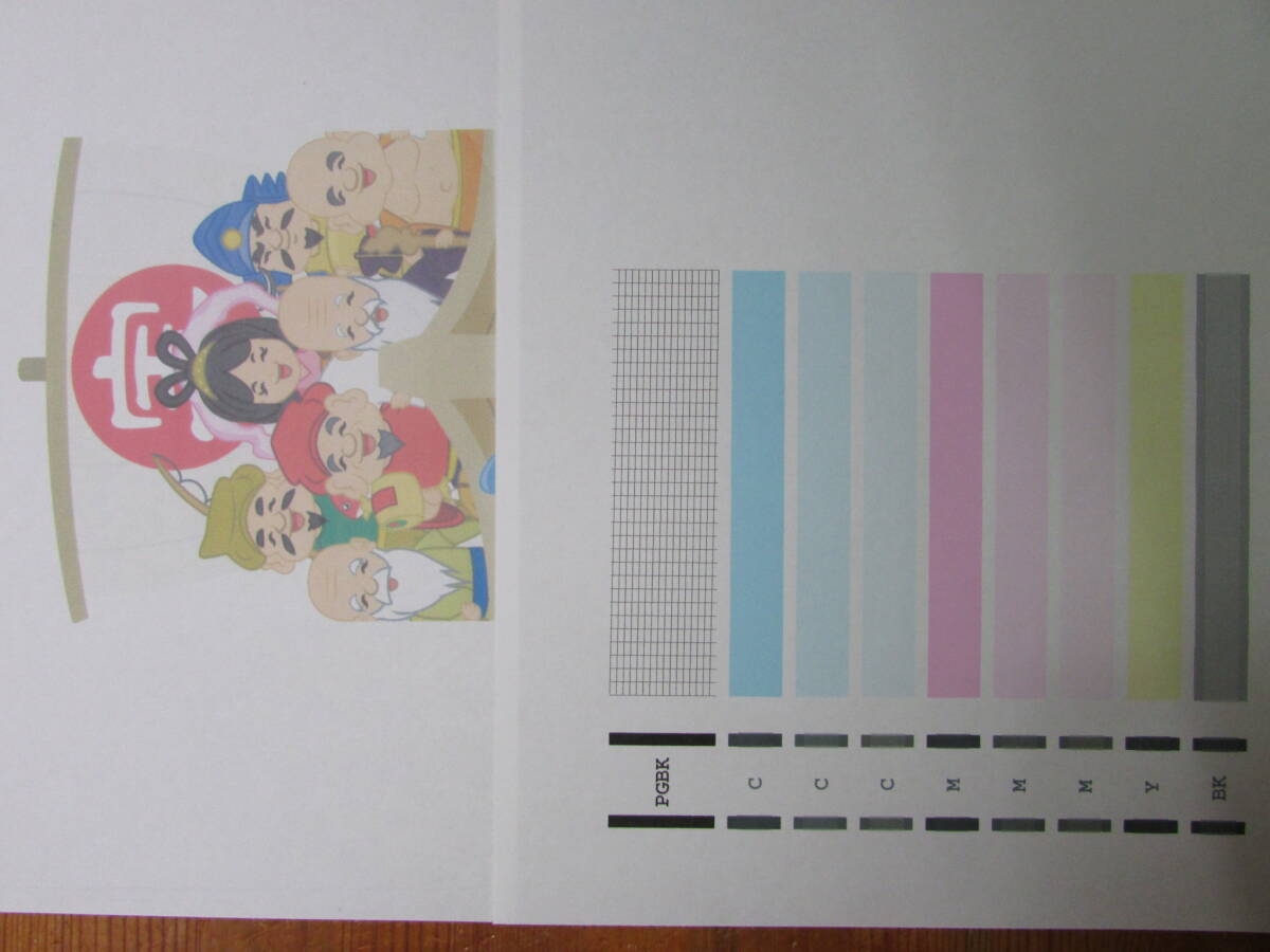 前面、背面とも問題なく給紙、印刷できています。印刷結果は画像を参照してください。ノズルチェックパターンの染料黒に多少の印刷ムラがあるように目えますが、コピー結果は問題ないように思います。純正インク、他社インク、詰め替えインクが混在してます。満タン表示が液晶に出ていますが、半分ほどのものもあります(お届け後、アイドリングでもインクは消耗するため、減った表示になるインクもあるかもしれません。)。このことはご理解ください。 画像のものがすべてです。ご確認ください。説明書、CD、CD-Rトレイが付属します。なかなか最近お目にかからない名機と(勝手に)思っています。 トラブル回避のため、お手元に届き次第、動作確認をお願いいたします。
