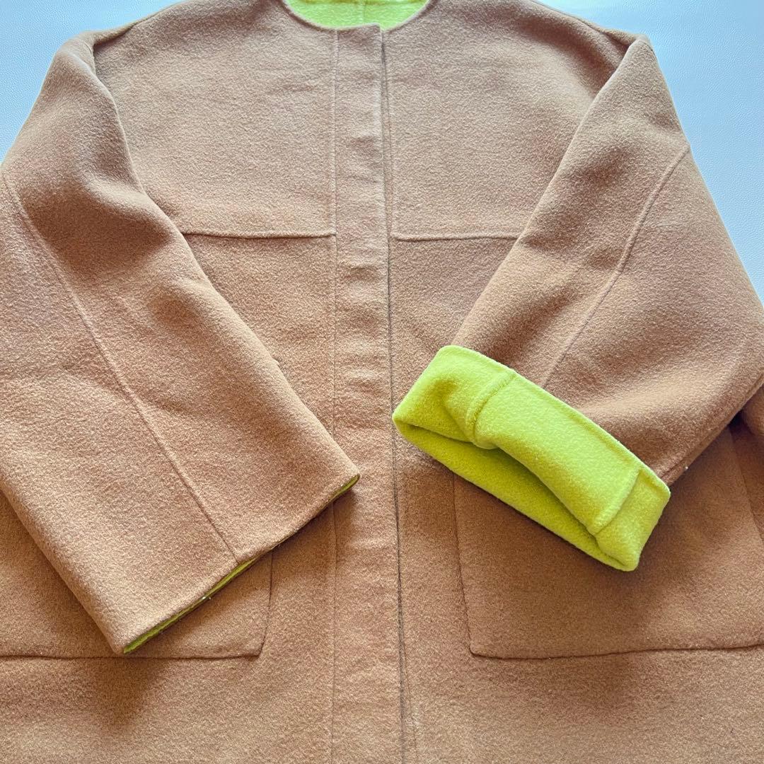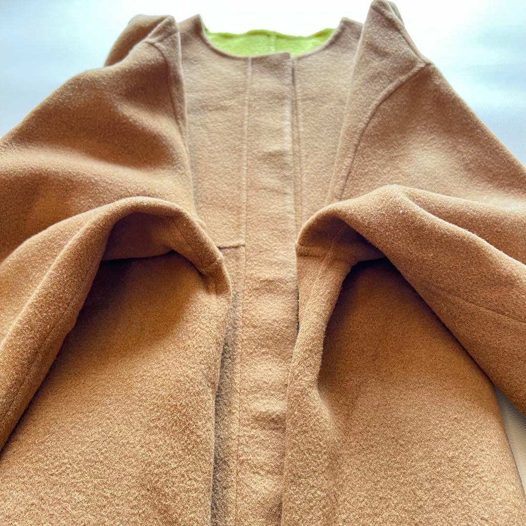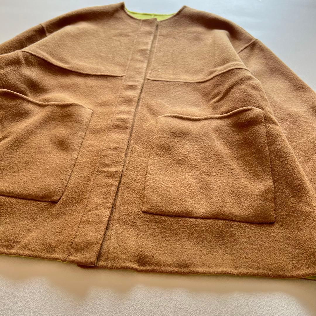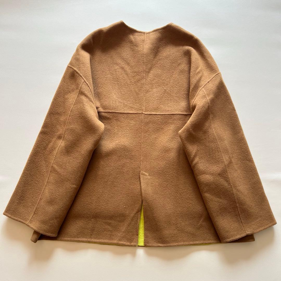 美品シップス SUPER140 配色 リバーシブル ノーカラー コート ダブルフェイス リバーコート