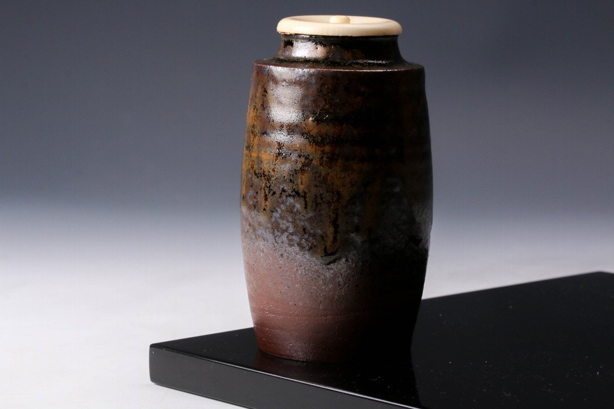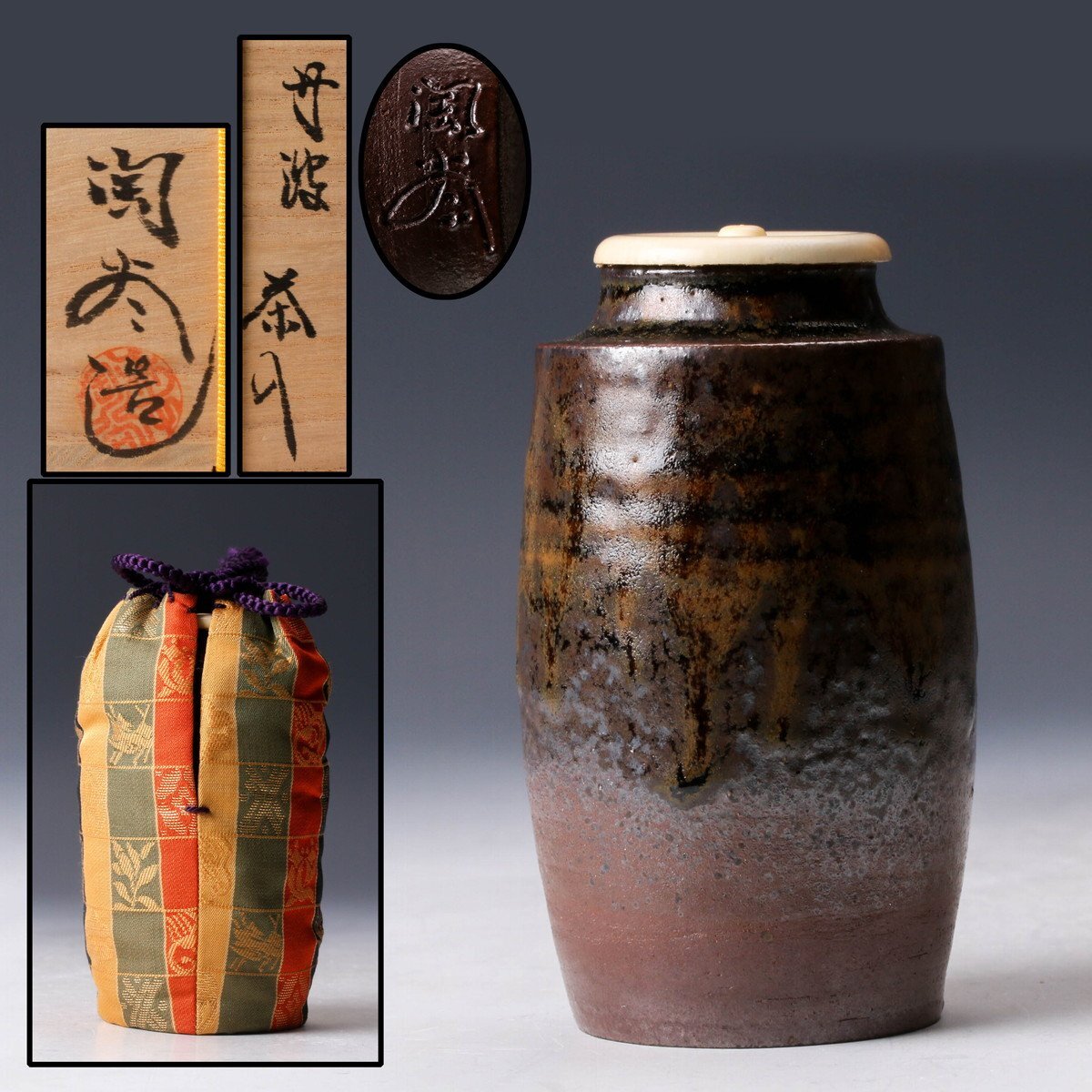 【佳香】森本陶谷 丹波茶入 共箱 仕覆(宝間道) 茶道具 本物保証