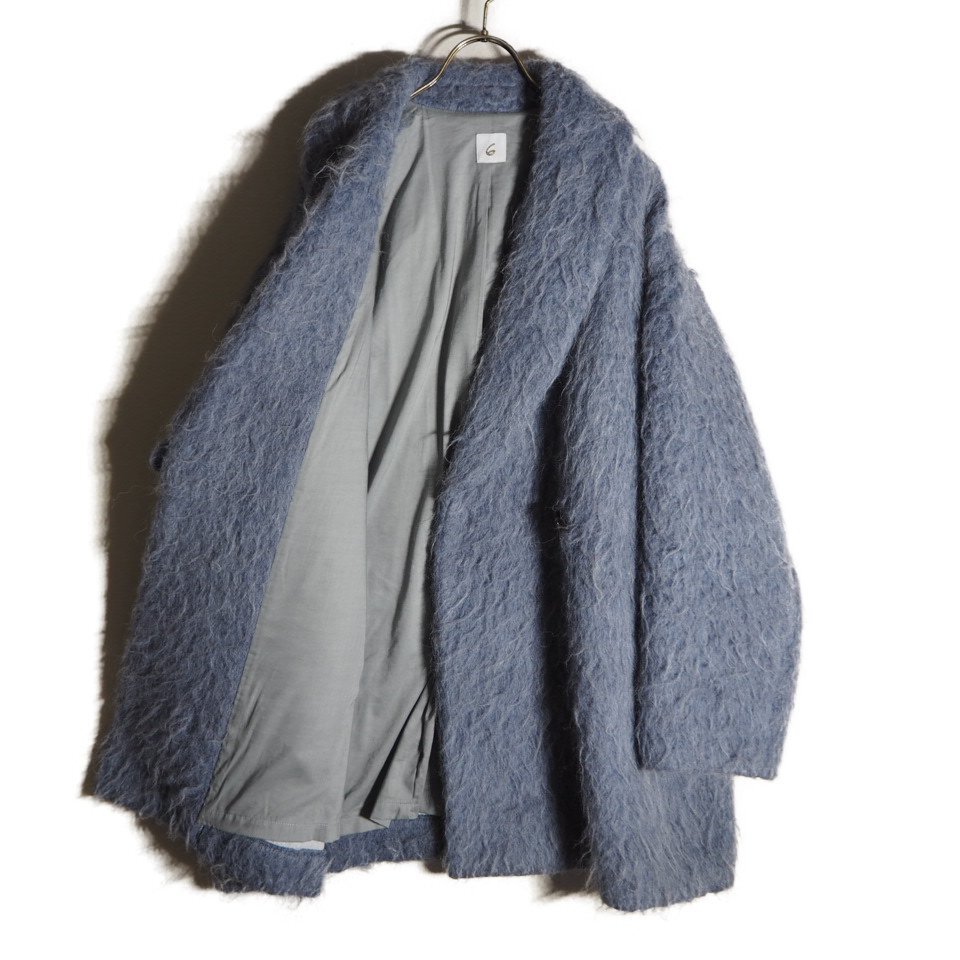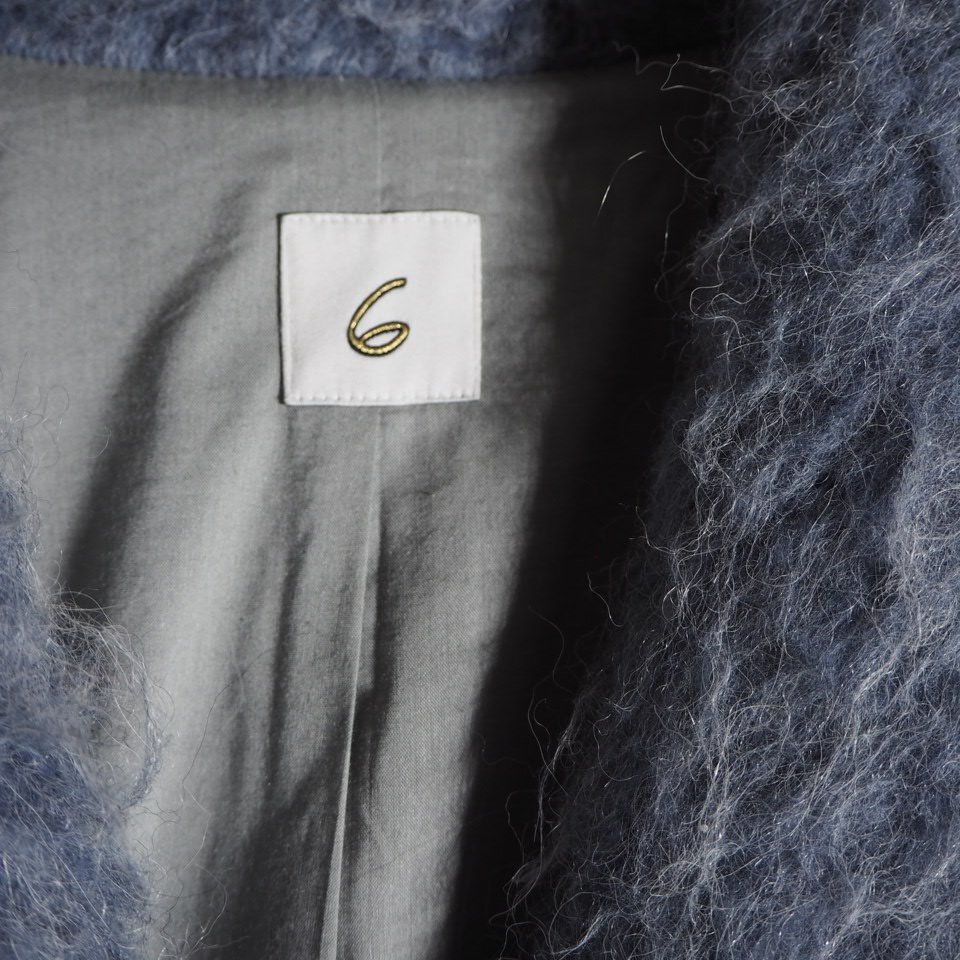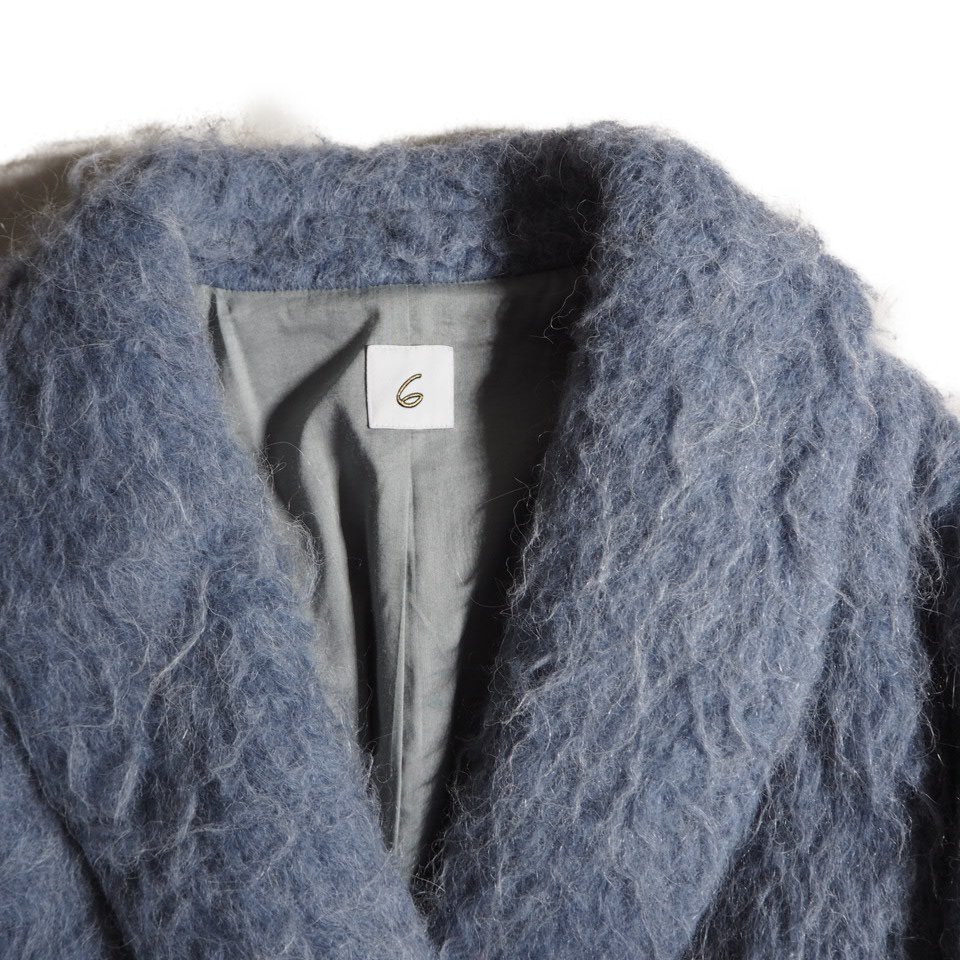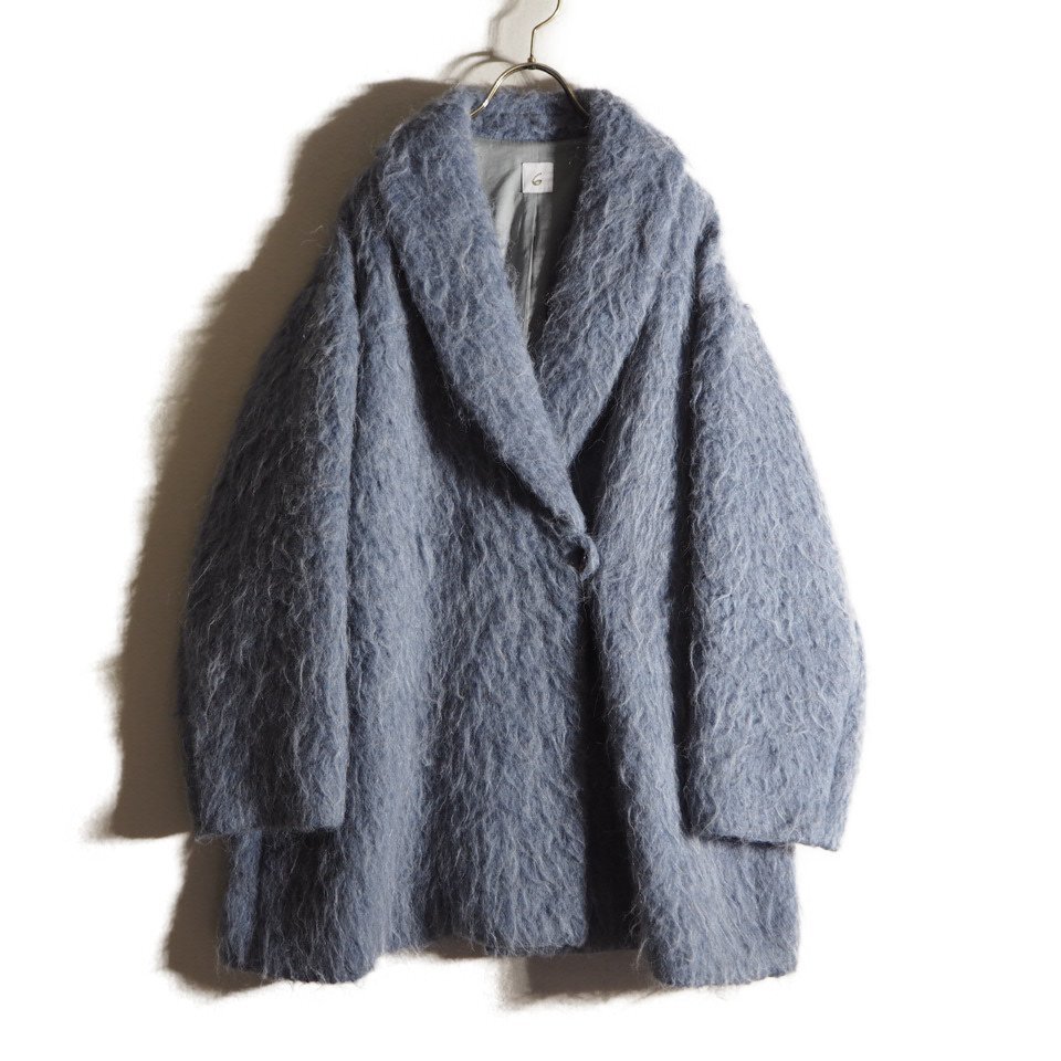 C4869h20 ▼6 ROKU ロク▼ SHAGGY SHAWL COLLAR COAT シャギー ショールカラーコート ブルー 36 / 8625-260-0363 ウール アルパカ 秋冬