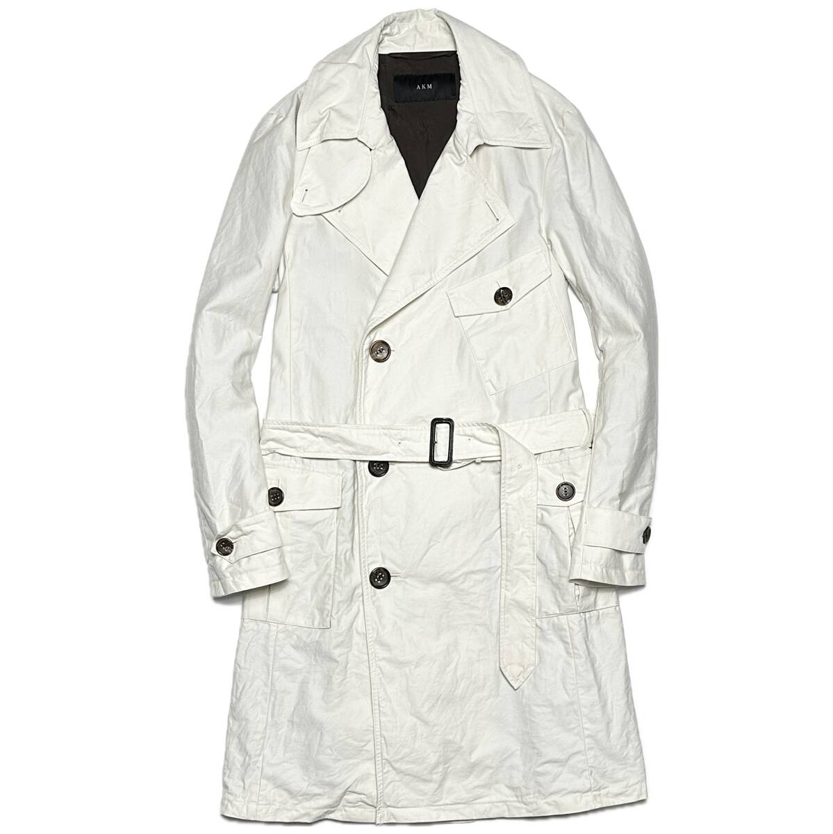 定価8.6万 AKM WASHED COTTON SATIN TRENCH COAT XLサイズ ウォッシュサテントレンチコート ダウン wjk ジュンハシモト