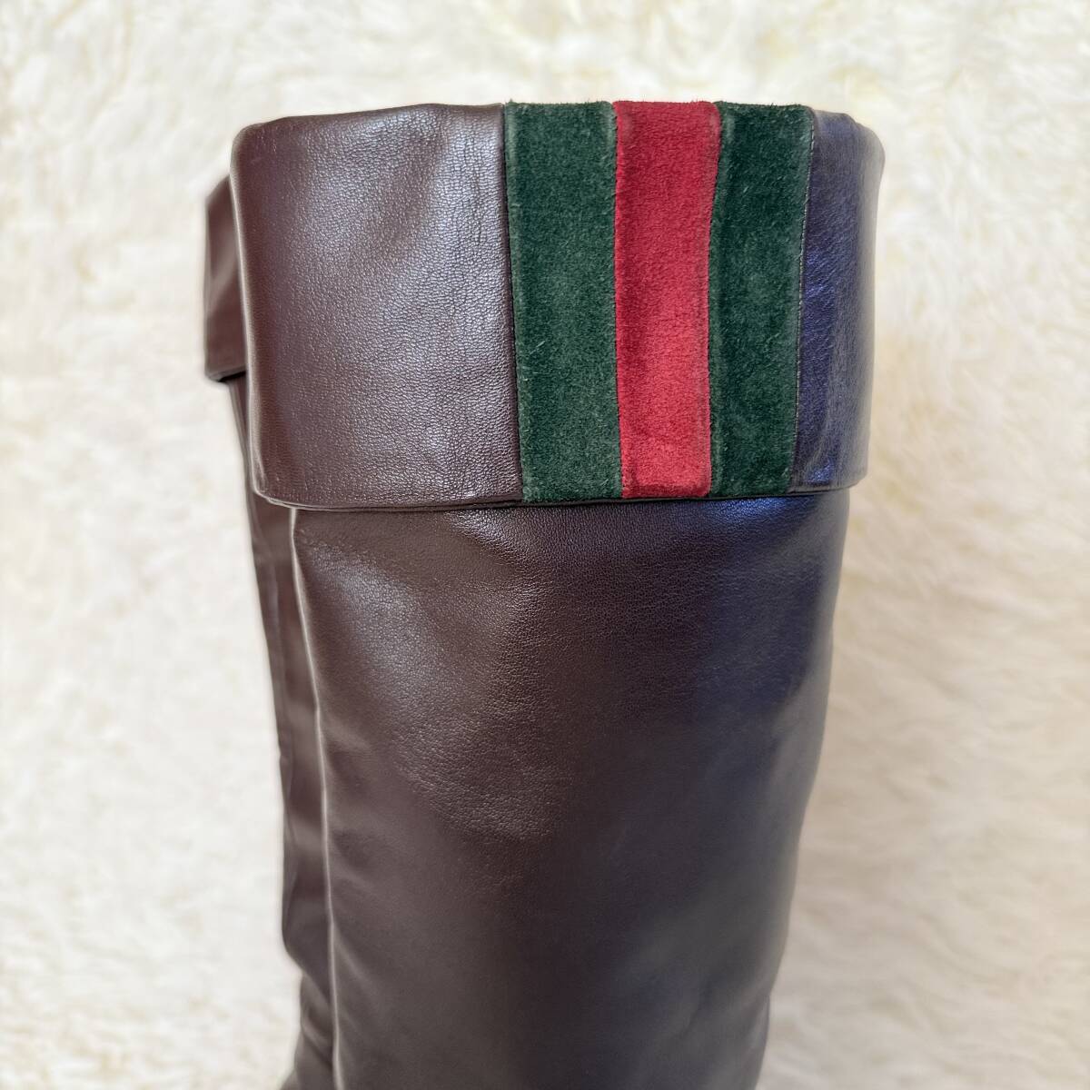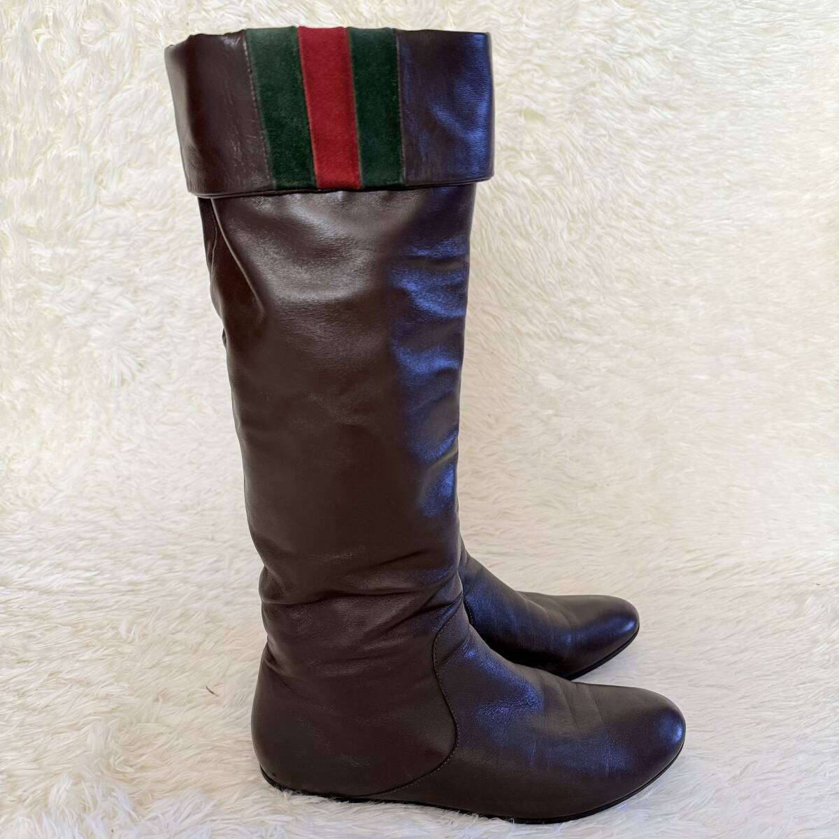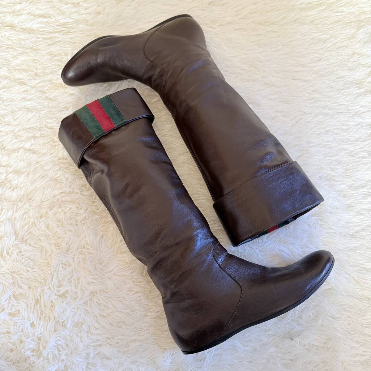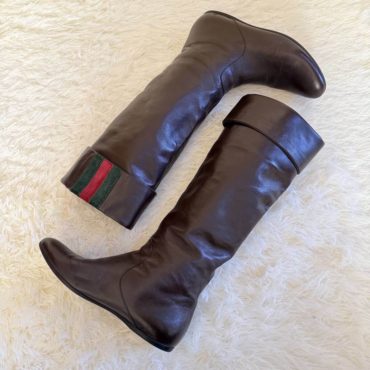 | ★ 商品名 ★ GUCCI グッチ シェリーライン レザー ロング ブーツ フラット 37 24㎝ ブラウン ★ |