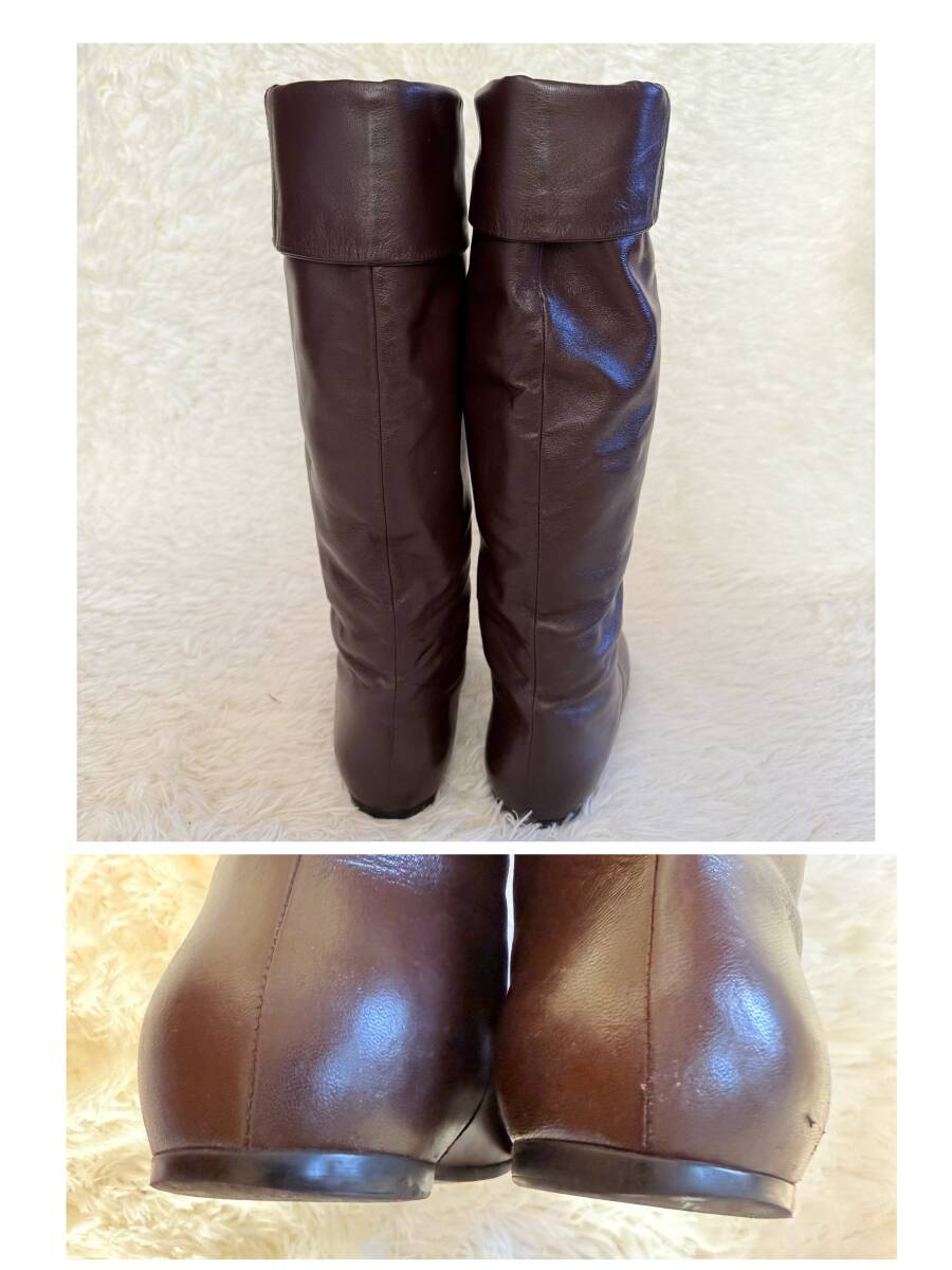 GUCCI グッチ シェリーライン レザー ロング ブーツ フラット 37 24㎝ ブラウン になります。 ★サイズ 37 24㎝相当 履き口周り38㎝ 筒高さ38㎝ ソール約1㎝ 多少の誤差はご了承下さい。 ★状態 中古 踵、つま先などソールに近い部分に小傷、スレ傷がございます。 ソール多少の減りがございます。 着用感は感じられますが、大きな目立つダメージ汚れなく、全体的には良い状態です。中古品もご理解の上、ご検討頂けましたら幸いです。 | ||||||||