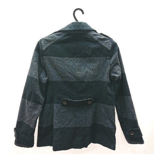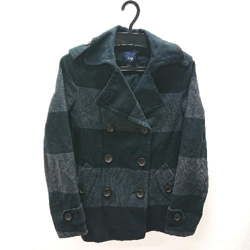 ◇ GAP ギャップ ボーダー ウエストタブ 長袖 Pコート サイズS ブラック グレー メンズ E