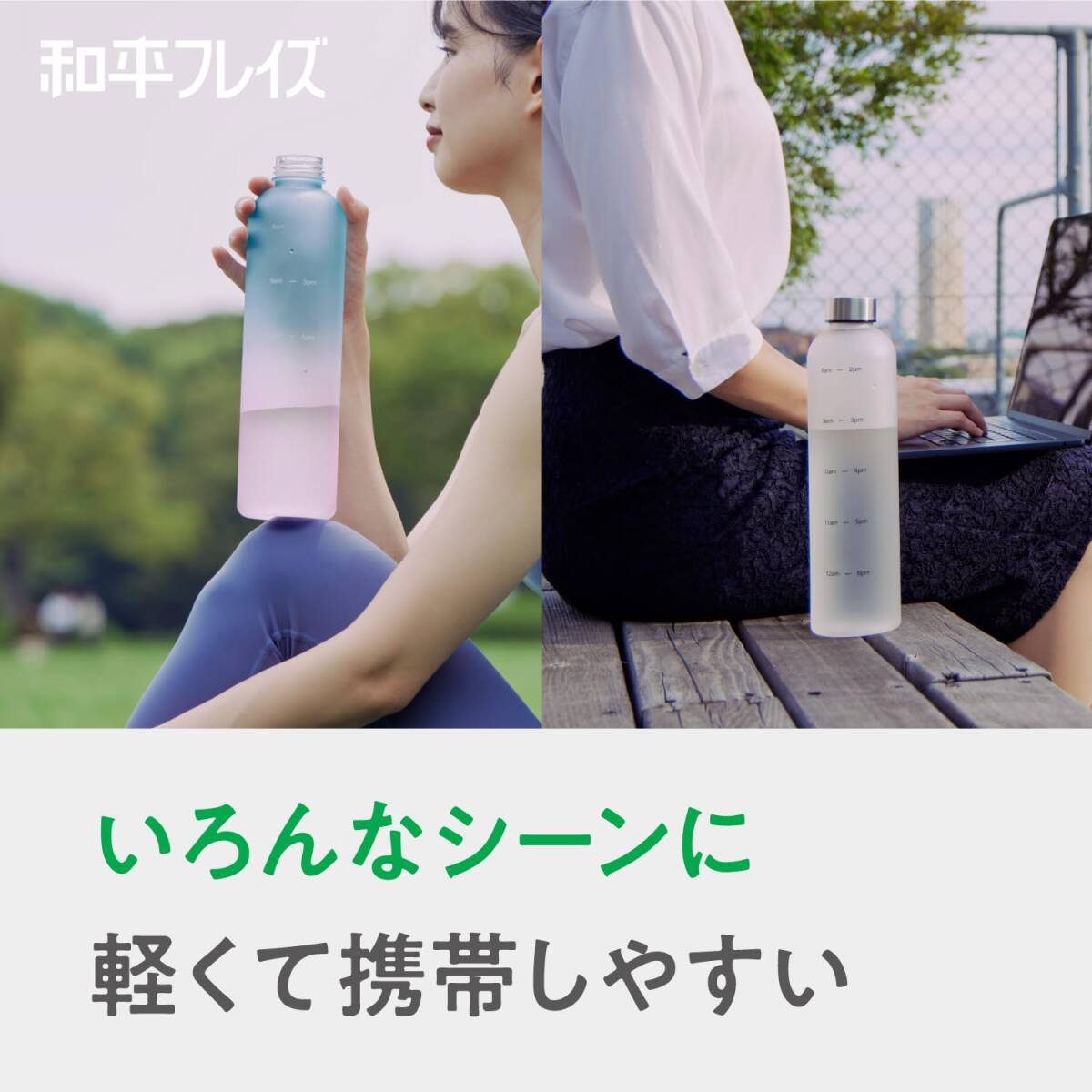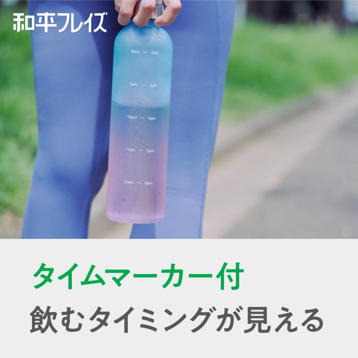 説明 1日に必要な水分を補給するために。目安となるタイムマーカー付きのウォーターボトルです。水分補給量が一目でわかるのでモチベーションを高めることができます。BPAフリーの丈夫なトライタン製。