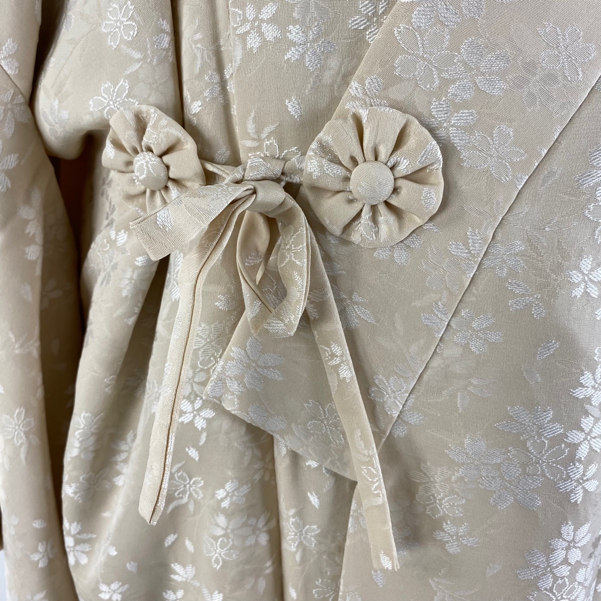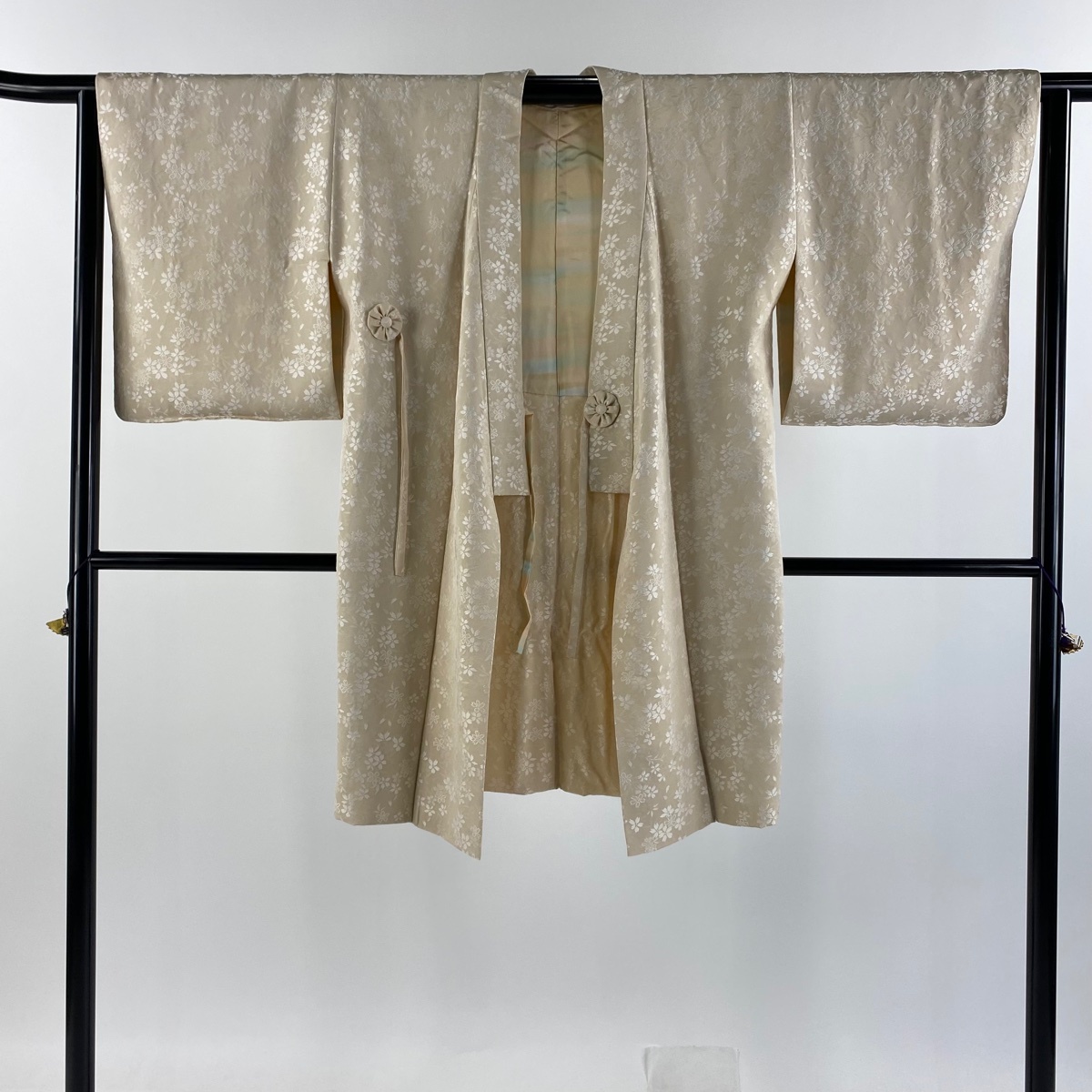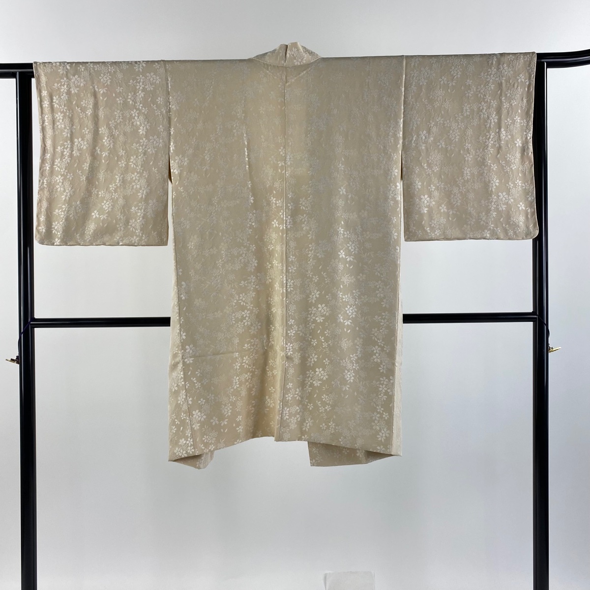 | 道中着 美品 逸品 和装コート 着物衿 桜 花びら ベージュ 身丈100 裄丈62.5 S 正絹 【中古】 |