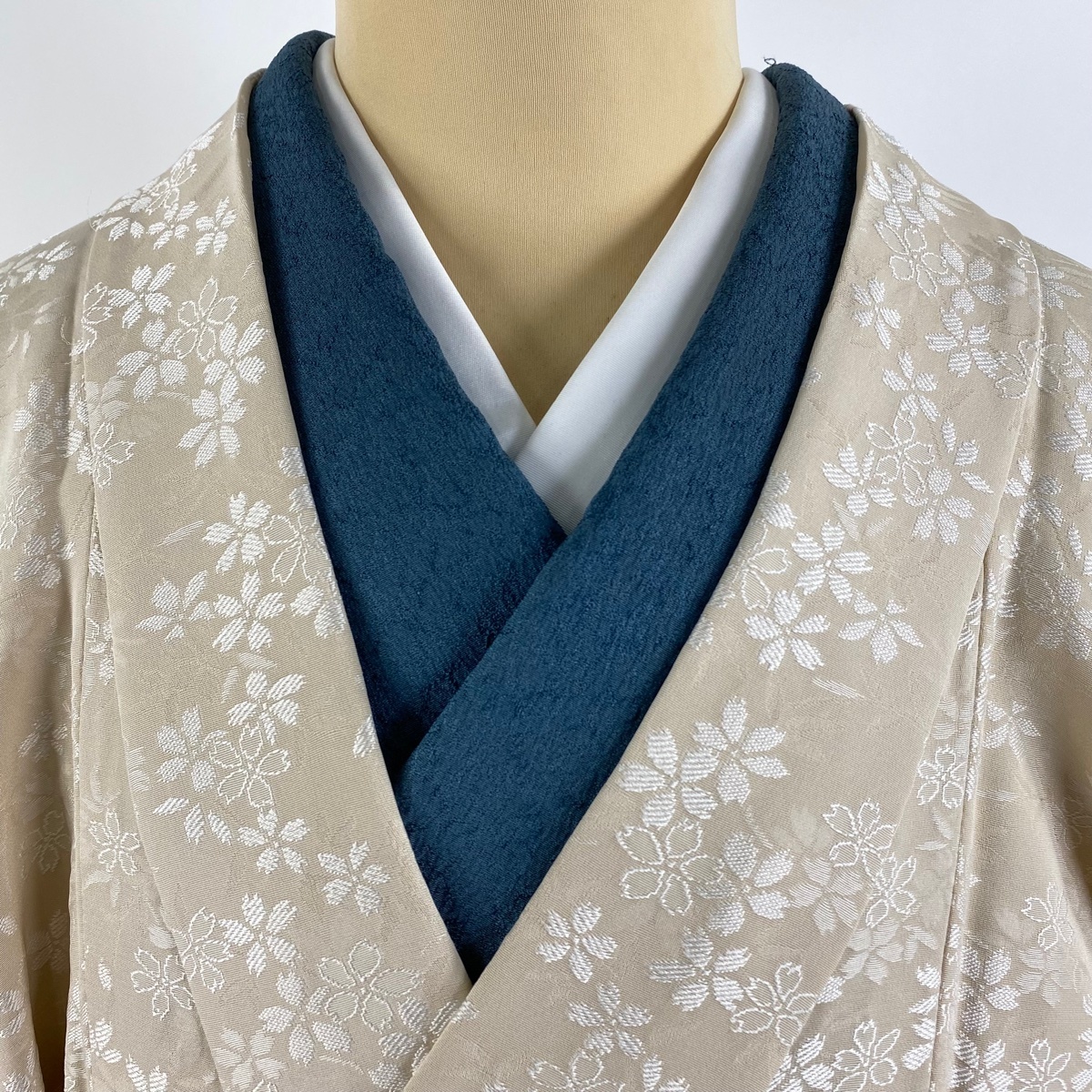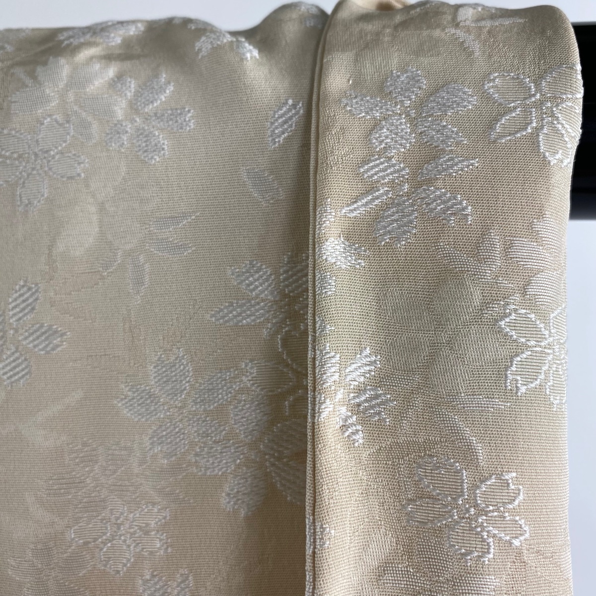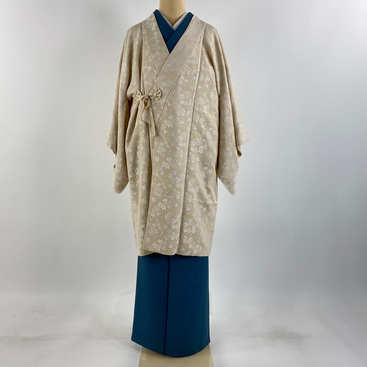 | 道中着 美品 逸品 和装コート 着物衿 桜 花びら ベージュ 身丈100 裄丈62.5 S 正絹 【中古】 |