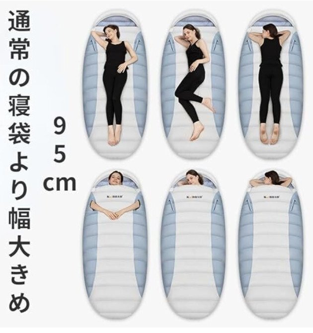 ■キャンプアウトドアウォームダウン寝袋、ユニークなデザイン、腕と足を伸ばすことができます。