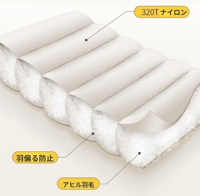 ★ホワイトダックフェザー2600g入り充填量、ふんわり軽くて暖かい。