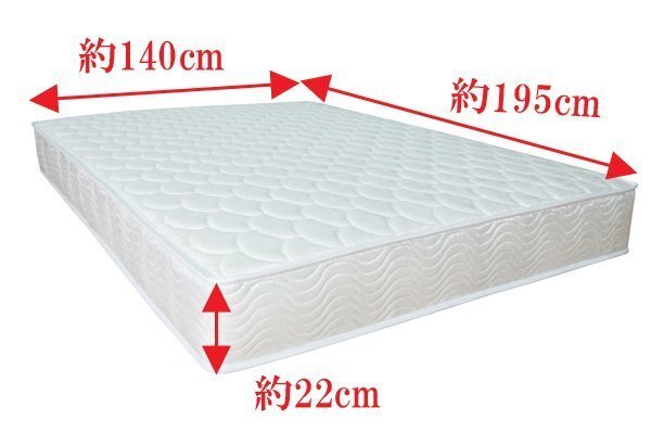| 商品サイズ | サイズ:ウッドスプリングベッド…約140(幅)x約(奥行)195x約(高さ)26(cm) マットレス…約140(幅)x約195(奥行き)x約22(高さ)(cm) |