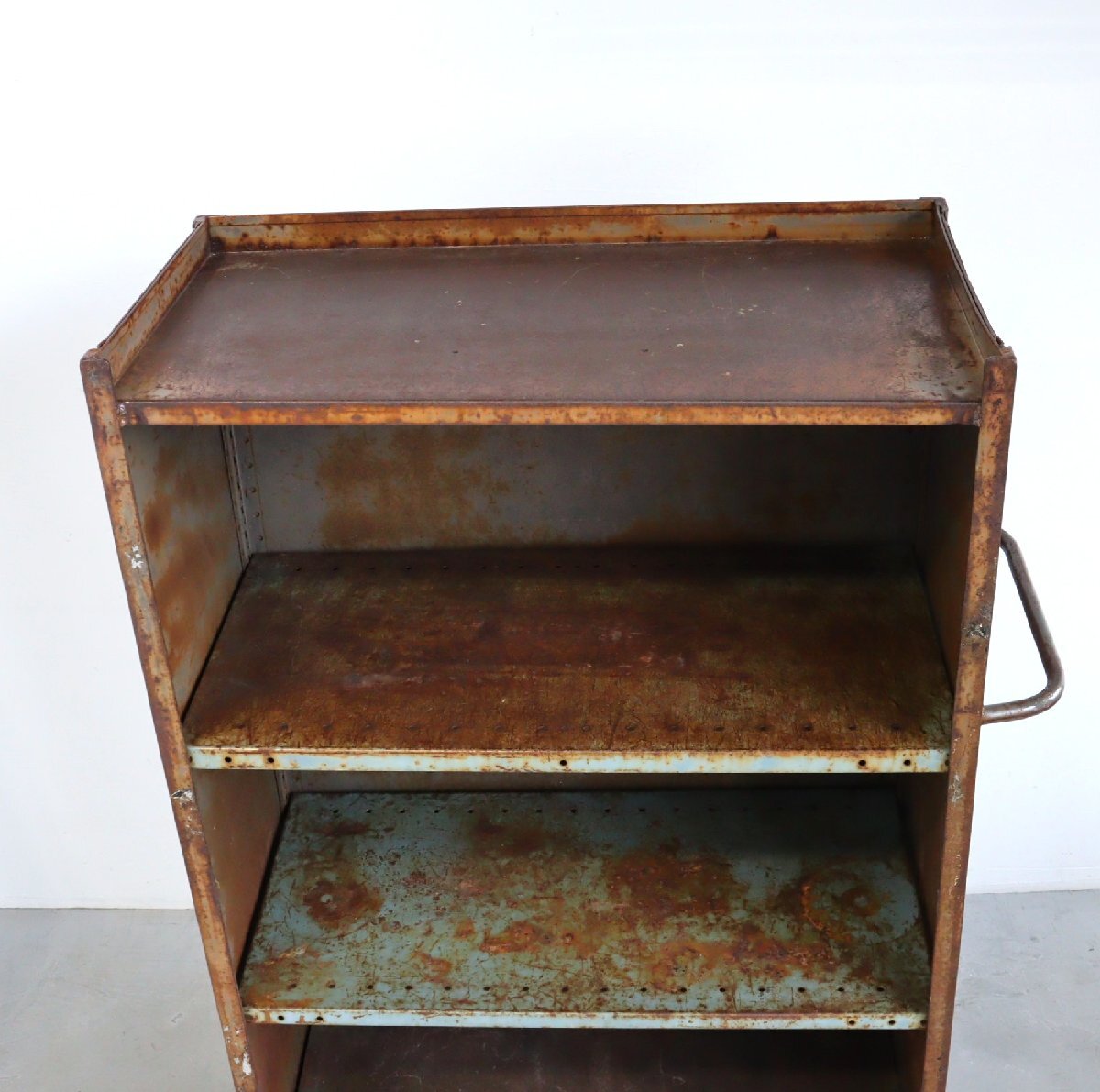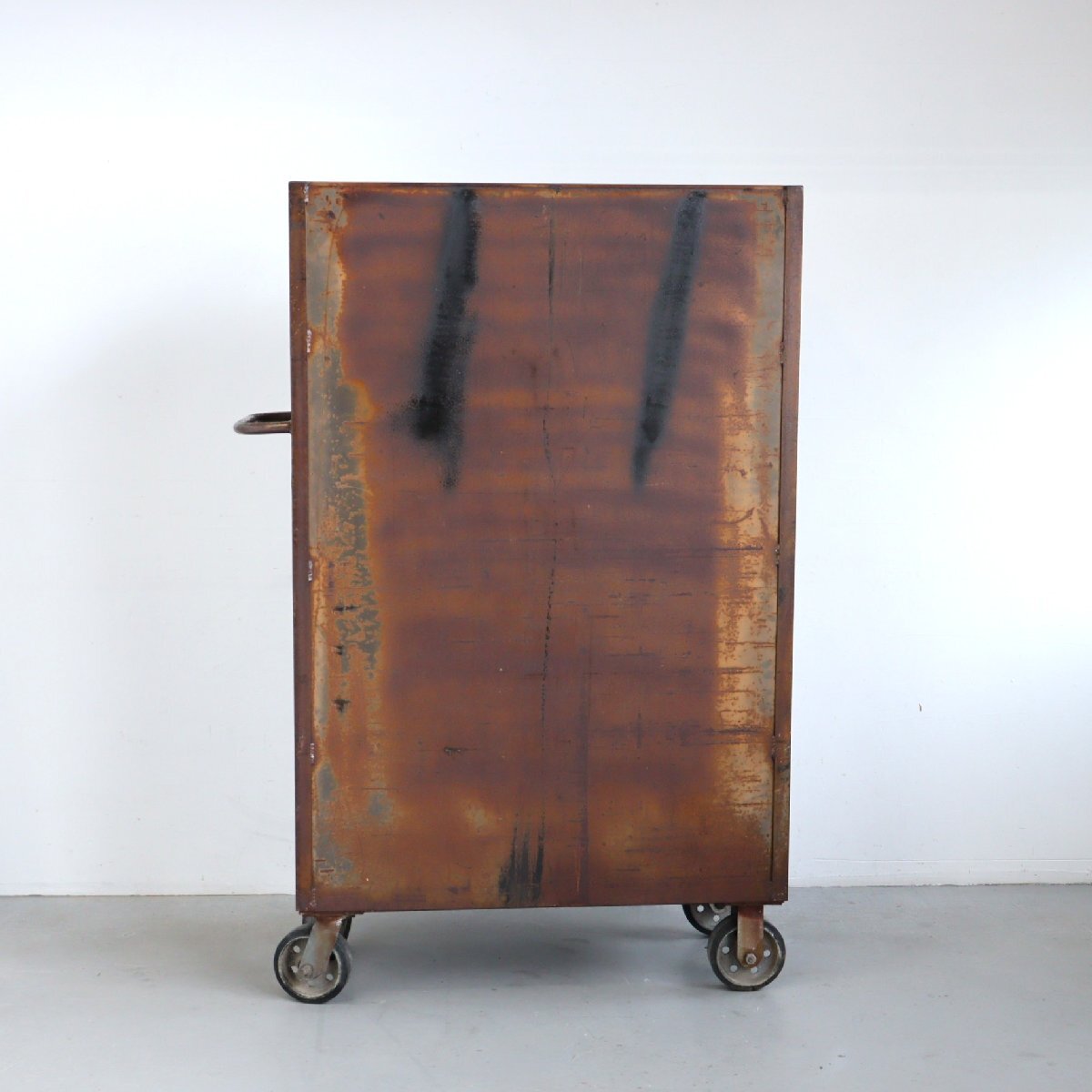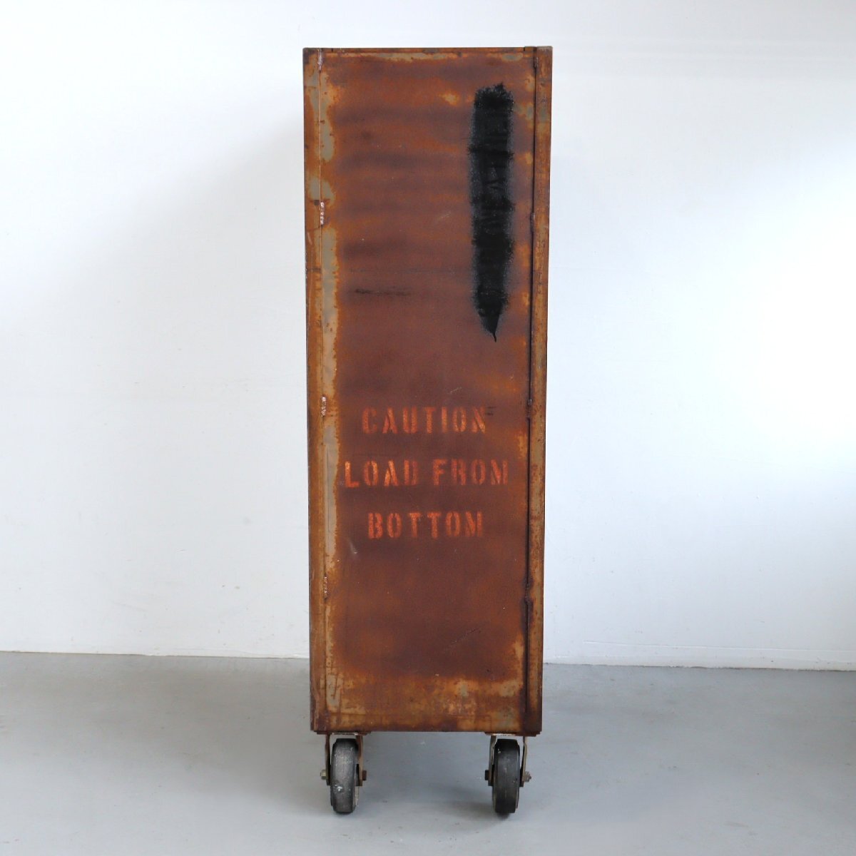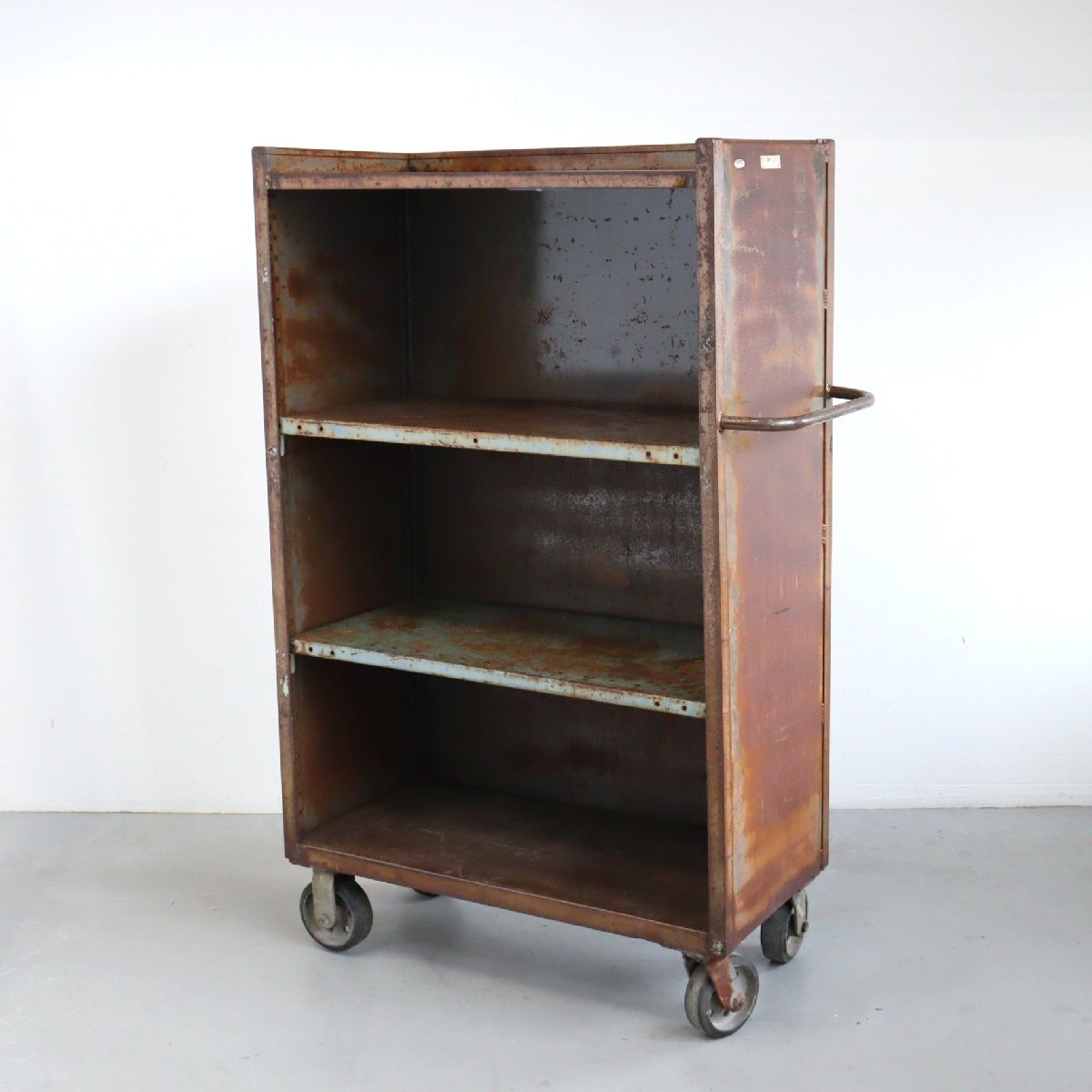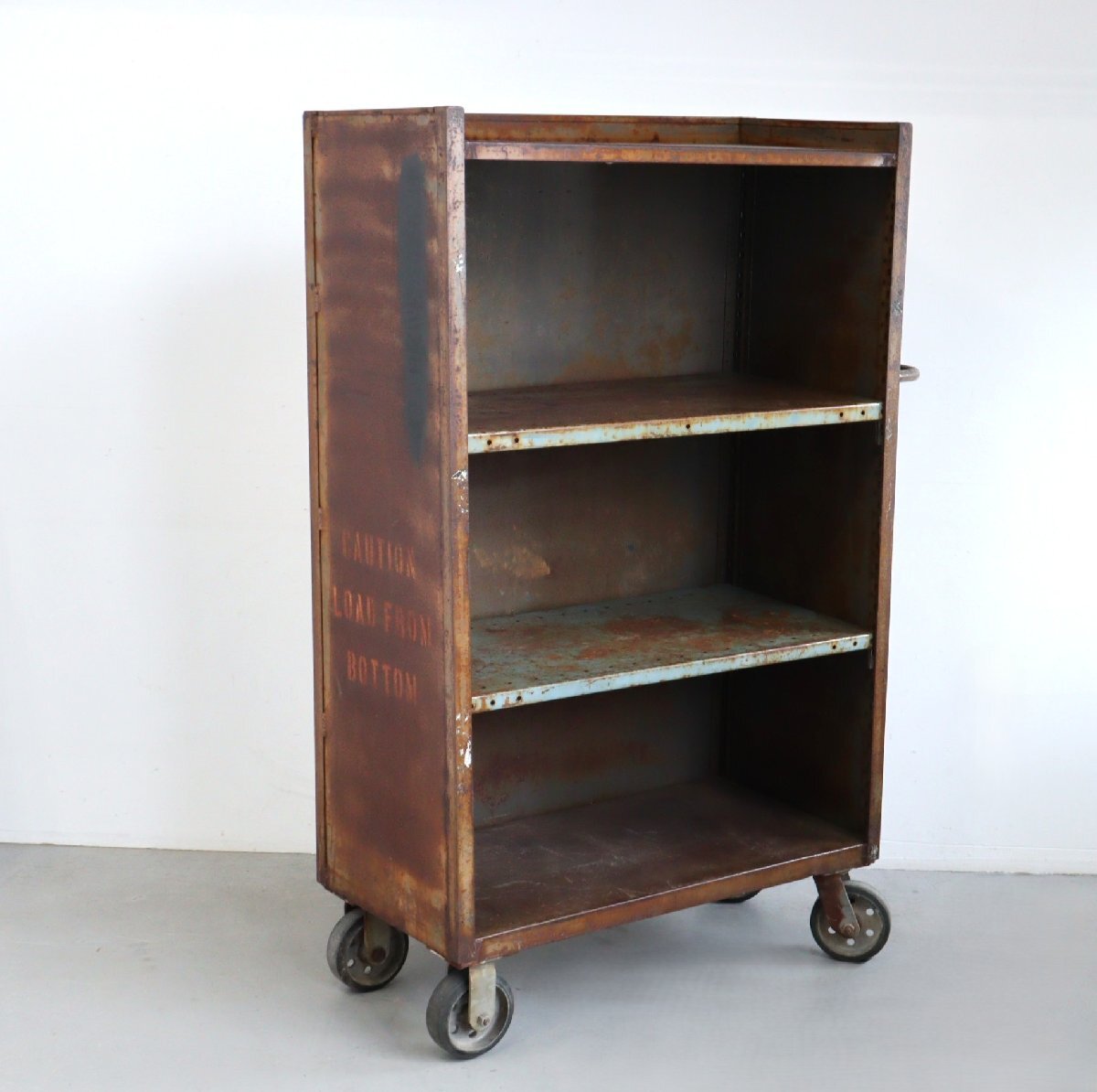 | 商品説明 explanation | 推定1940年代から1950年代の「M.E.CANFIELD.CO」製シェルフワゴンです。 メタル製の頑丈な造りで、上から2段目と3段目が可動式で使い勝手も良く、サイドのステンシルがインダストリアルな雰囲気があり今のモノには出せない存在感があります。 ガレージや店舗ディスプレイなどにいかがでしょうか。 |