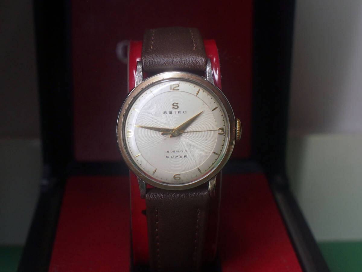 戦後の混乱から51950年(昭和25年)、ようやく世の中も落ち着きを取り戻そうとしていた頃、諏訪工場でこのスーパーはセイコー初の本中三針として誕生しました。