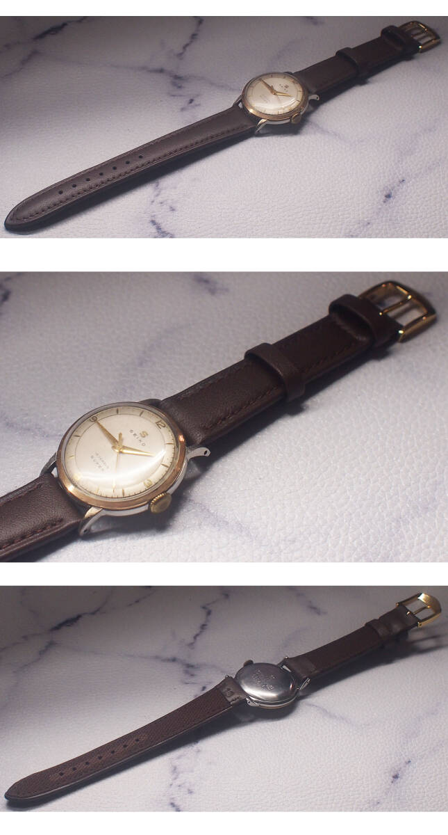 ・裏蓋(D5…)より195512月の製造モデルで、今から70年前の時計となります。裏蓋の表示通り、ケース表はメッキよりずっと膜の厚い金張りです。