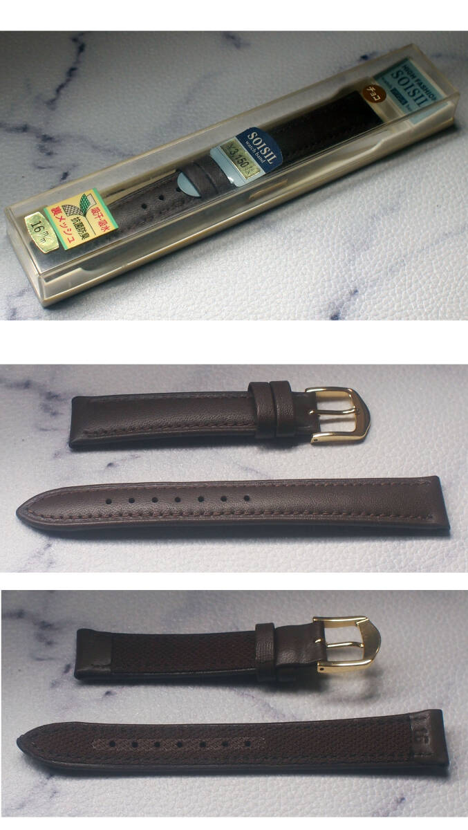 裏メッシュの新品茶革ベルトに金尾錠です。