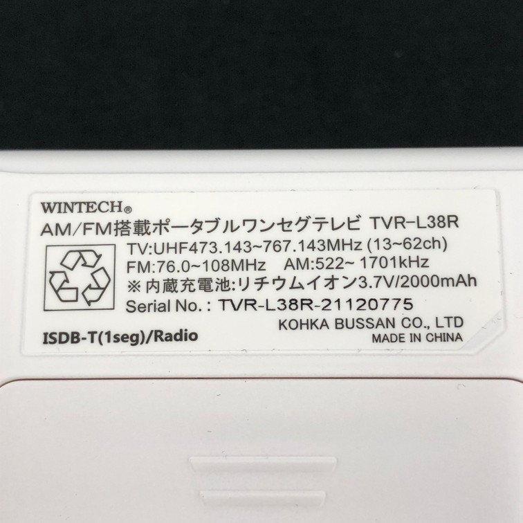 | WINTECH ウィンテック AM/FM搭載 ポータブルワンセグテレビ TVR-L38R 箱付き 通電〇【DKAM8040】 |