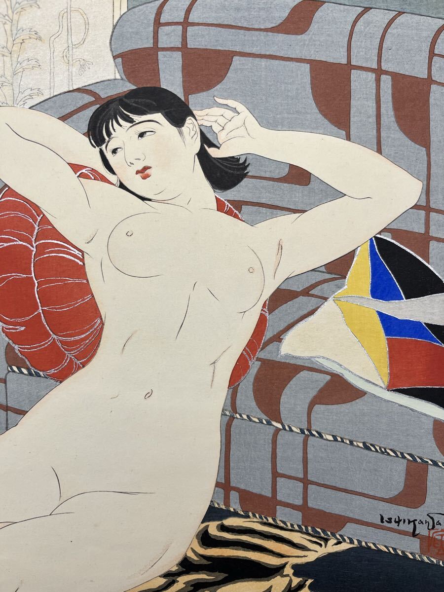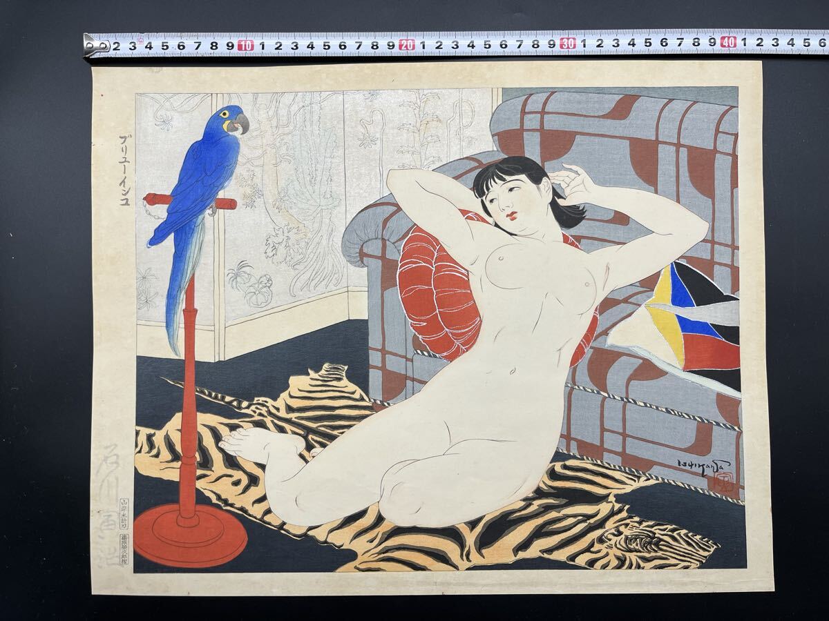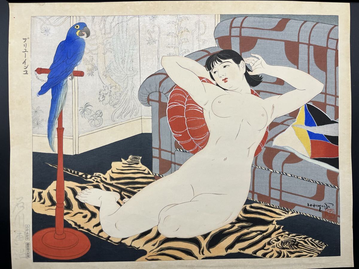 【真作】石川寅治「ブリューインコ(裸女十種)」版上サイン 透かしあり 山岸主計刀 当時物 浮世絵木版画 大判 新版画 検:川瀬巴水 吉田博