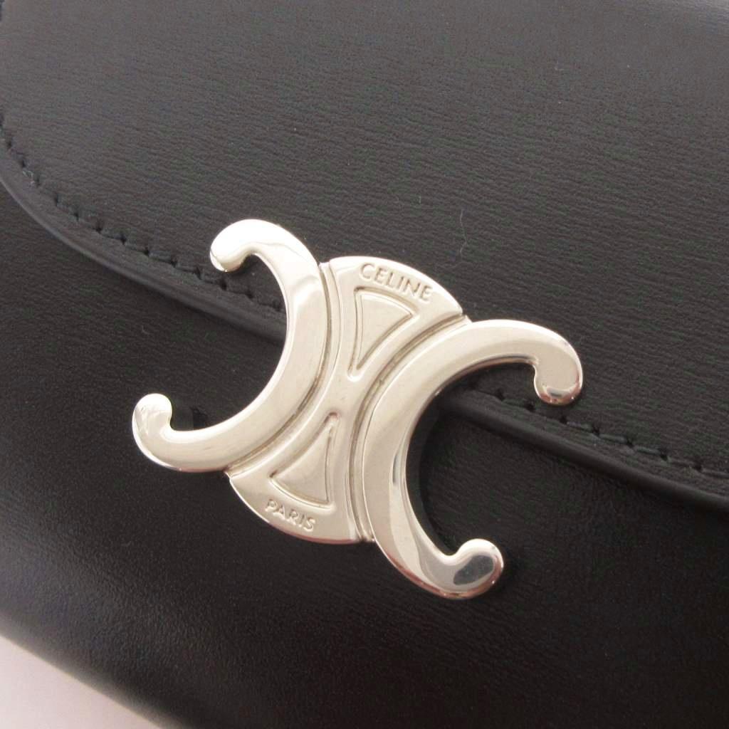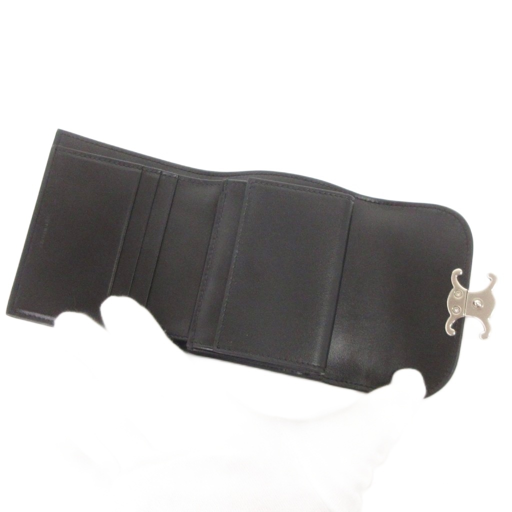 セリーヌ 美品 スモール フラップ ウォレット トリオンフ 財布 三つ折り コンパクト シャイニーカーフスキン 10D783DPV.38SI 黒