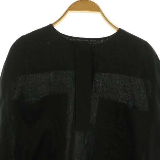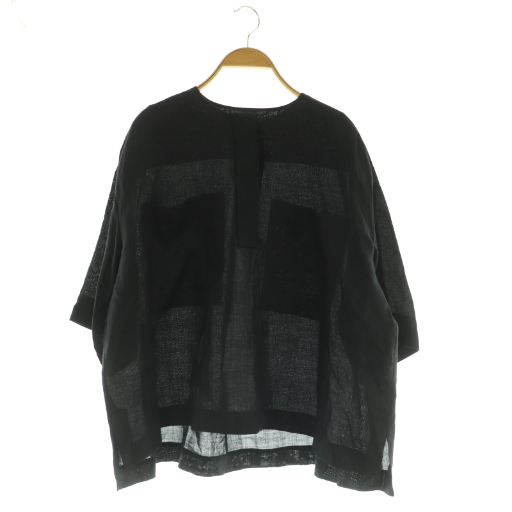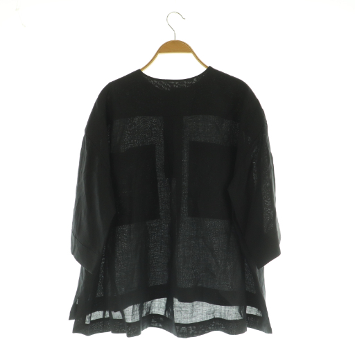 ドゥロワー Drawer ポケットショートスリーブブラウス リネン プルオーバー 36 ブラック /MY ■OS レディース