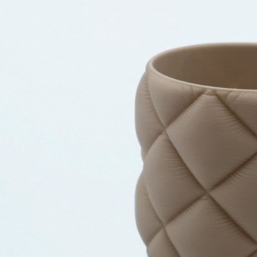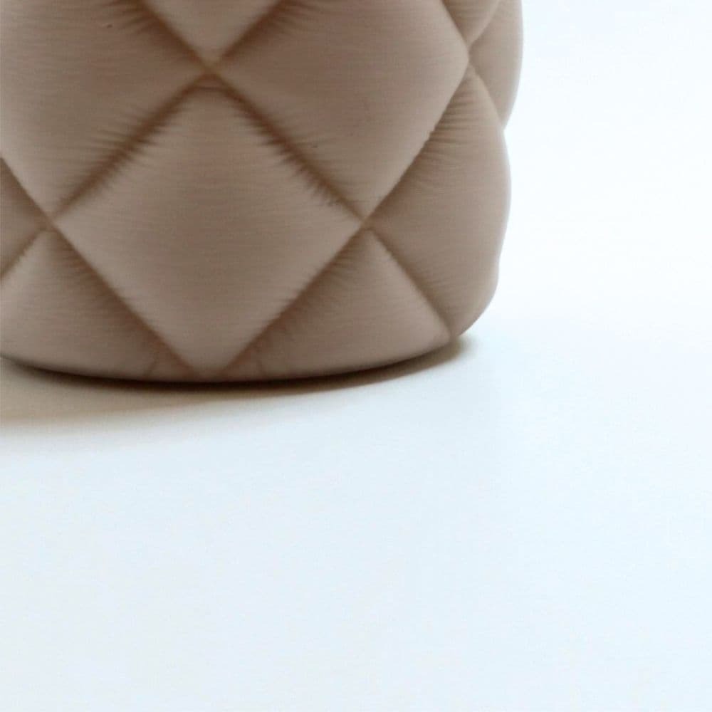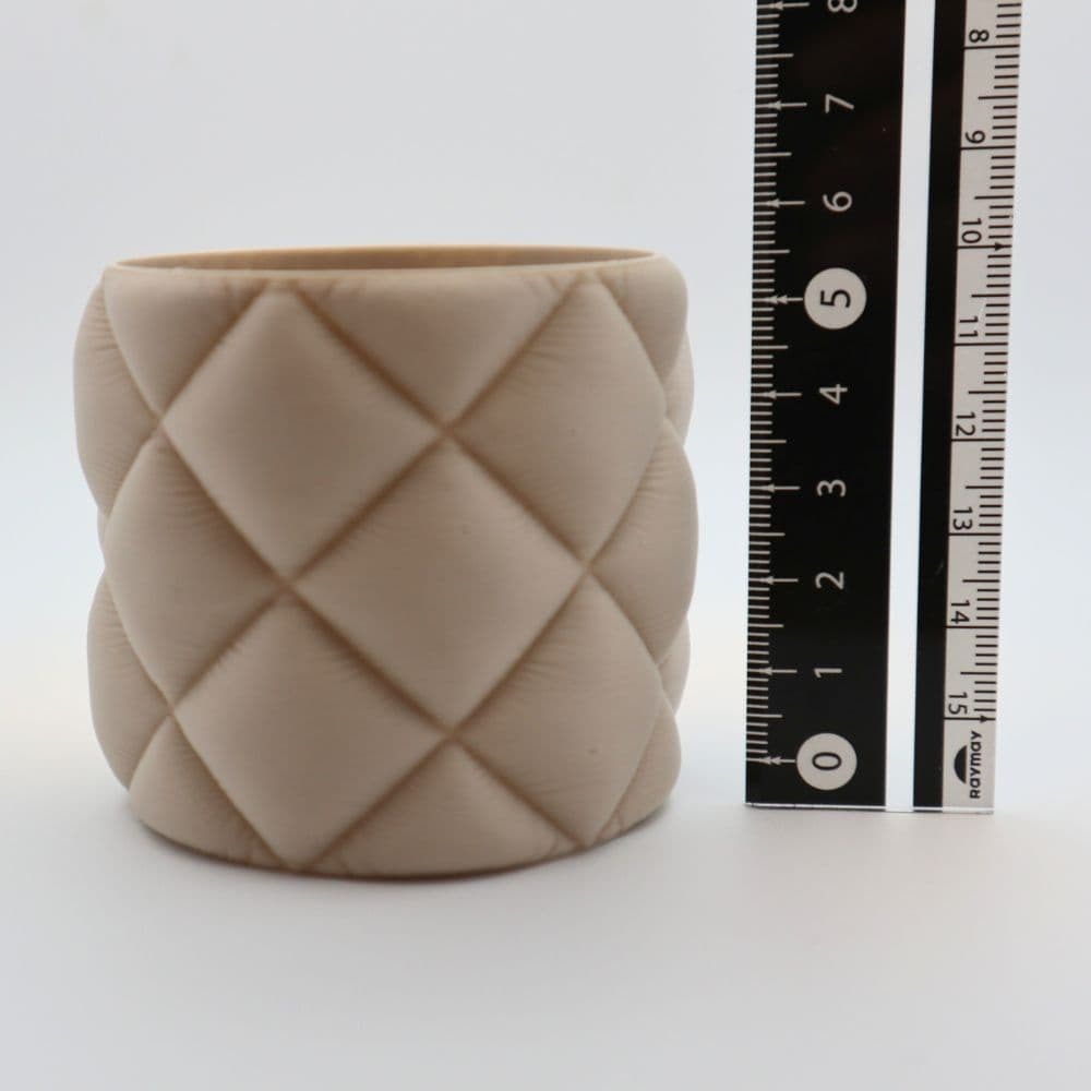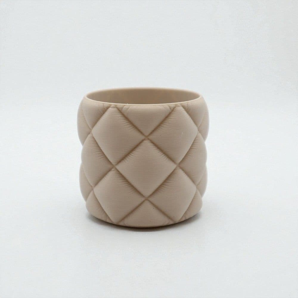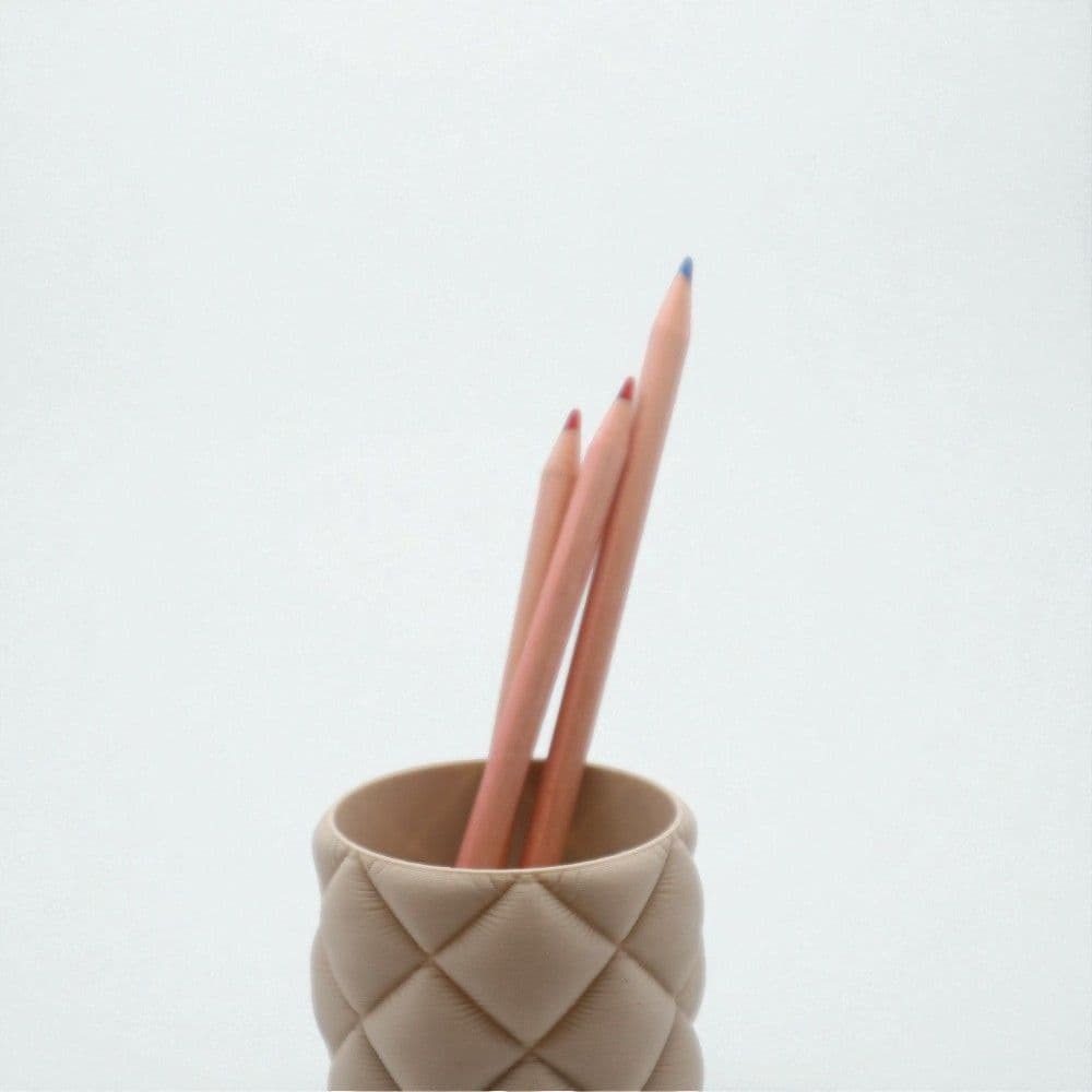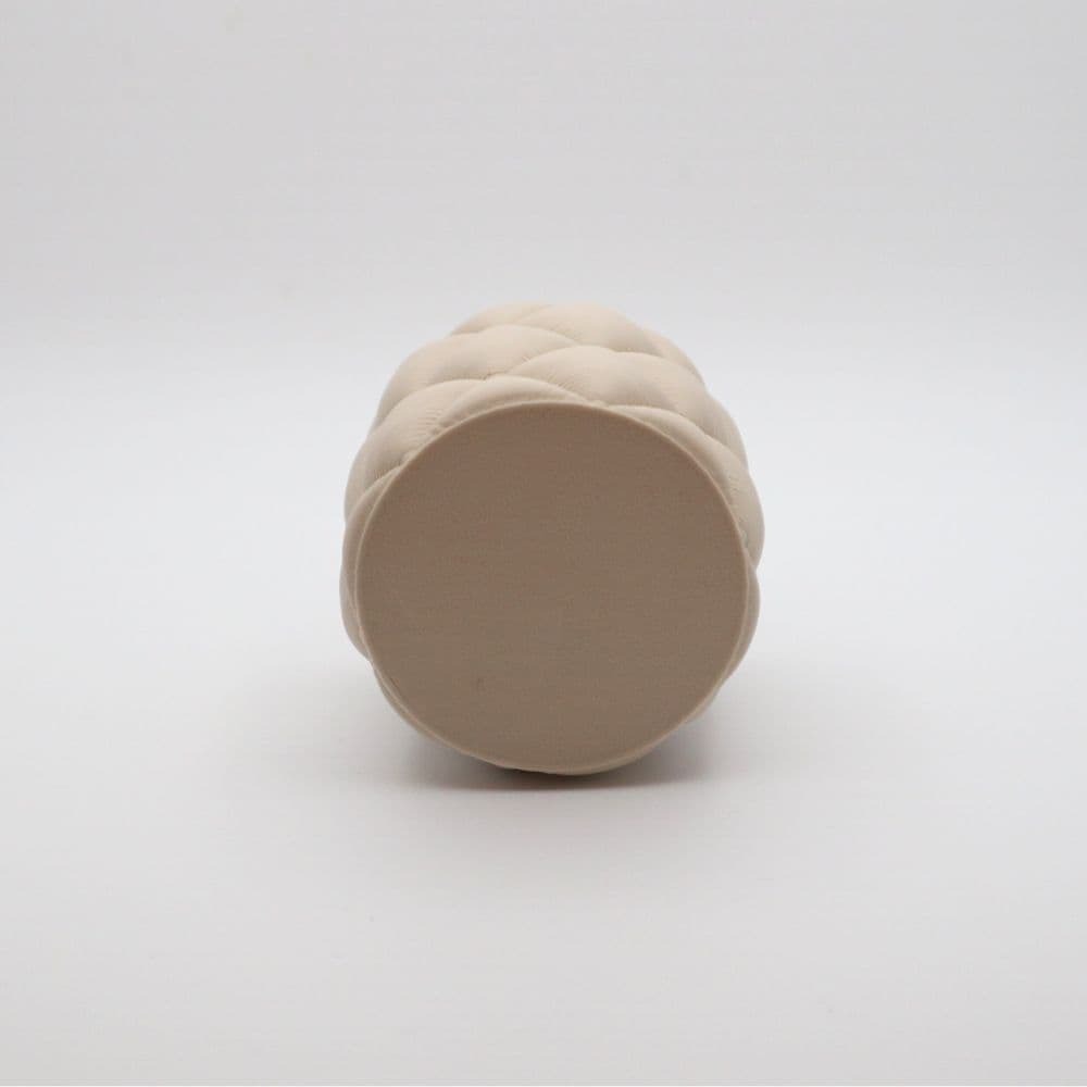 ダウンジャケットを思わせるキルティング風のフォルムが、冬のぬくもりを感じさせる季節限定ペンスタンド。見た目はふっくらしていますが、3Dプリンターで硬質に仕上げているためしっかり自立し、ペンやはさみを安定して収納できます。やわらかなマット質感で指紋がつきにくく、お手入れは軽い水拭きでOK。底面はフラットで移動もスムーズです。デスクの端にも置きやすいコンパクト設計で、在宅ワークや勉強スペースに冬らしいアクセントをプラス。ひとつ置くだけで、デスク周りに季節感と遊び心を添えてくれます。