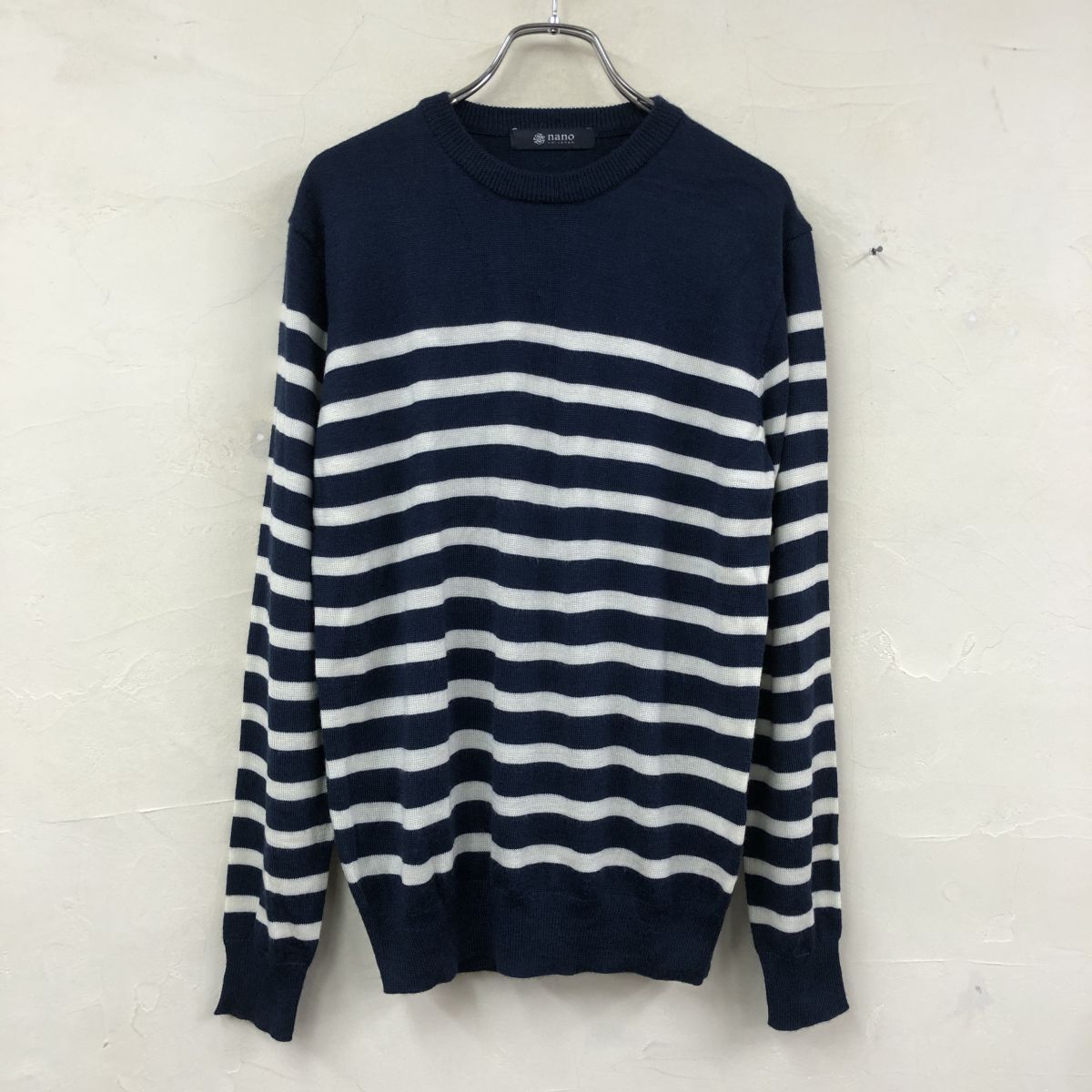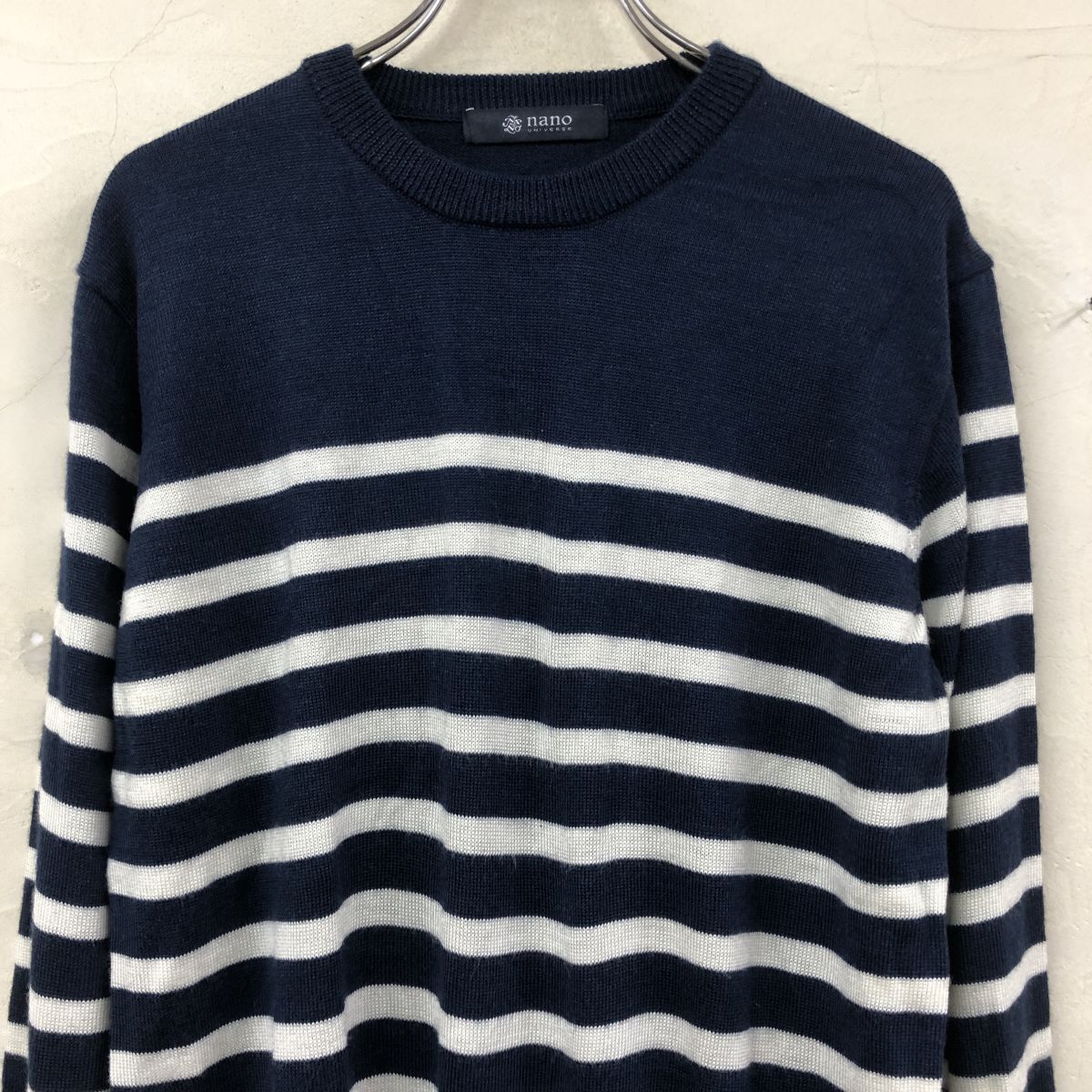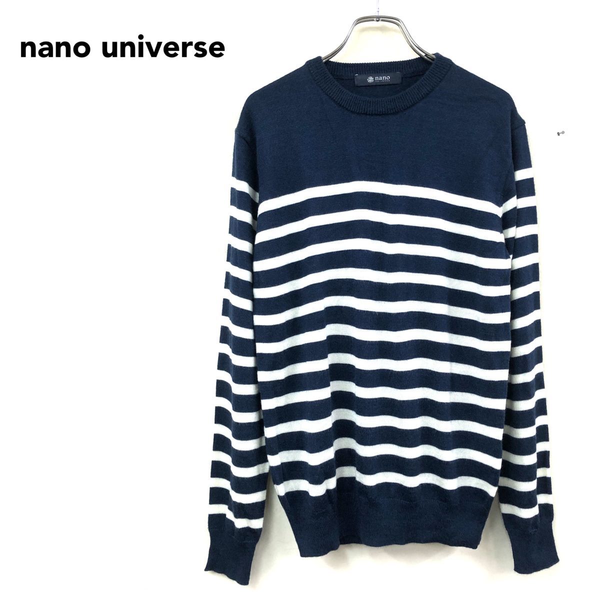 2N1301-W◆nano universe ナノユニバース 長袖 プルオーバーニット フレンチボーダー カジュアル◆size:S ネイビー ホワイト アクリル 他