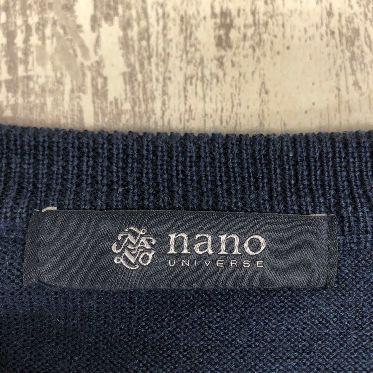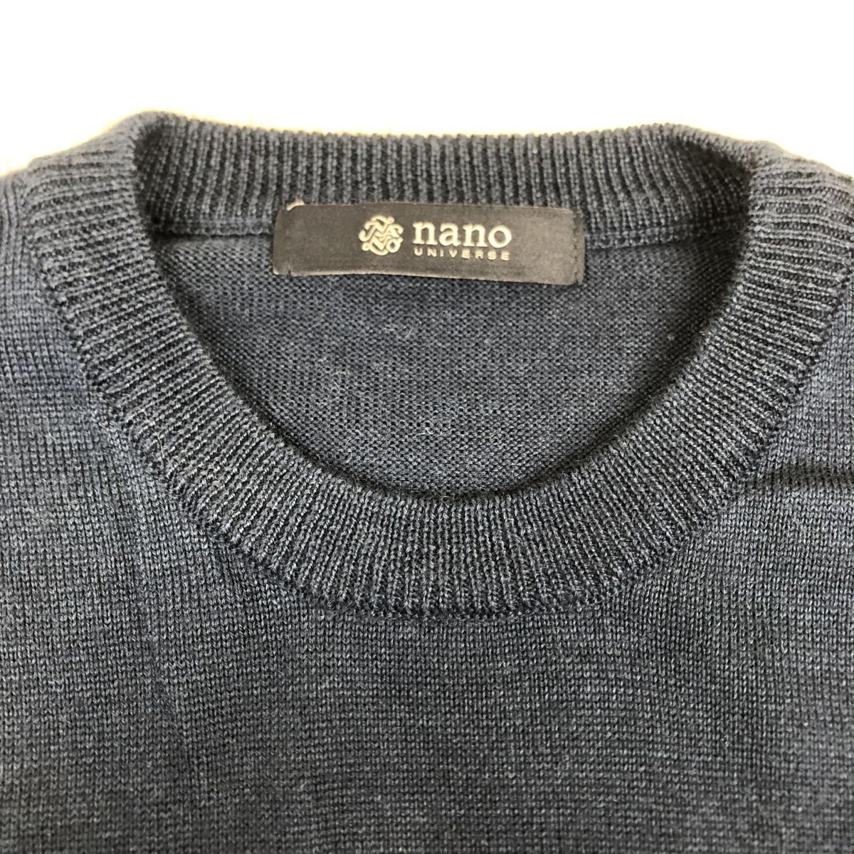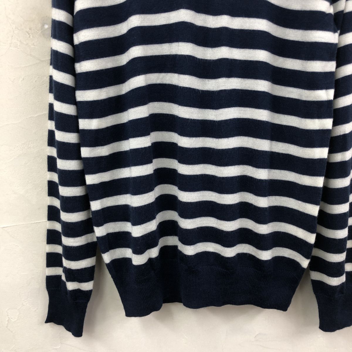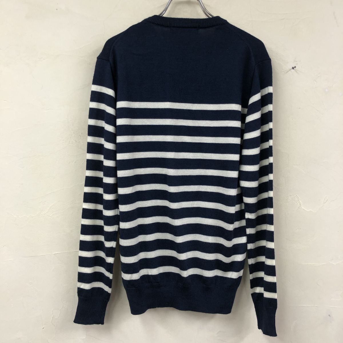 2N1301-W◆nano universe ナノユニバース 長袖 プルオーバーニット フレンチボーダー カジュアル◆size:S ネイビー ホワイト アクリル 他
