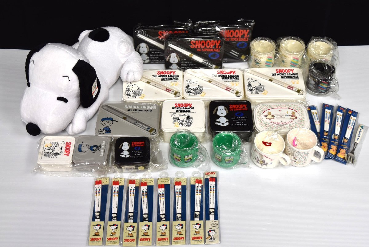 D-324 中古 未使用 ジャンク品 スヌーピー けろっぴ マロンクリーム 他 ランチボックス コップ 箸 ぬいぐるみ キャラクター サンリオ