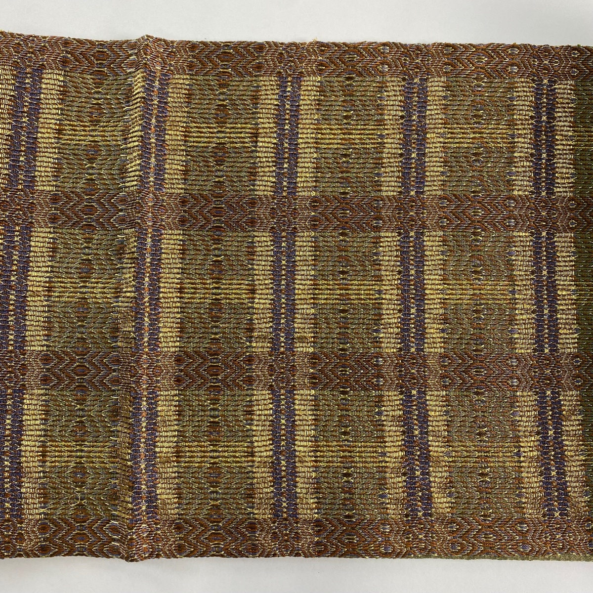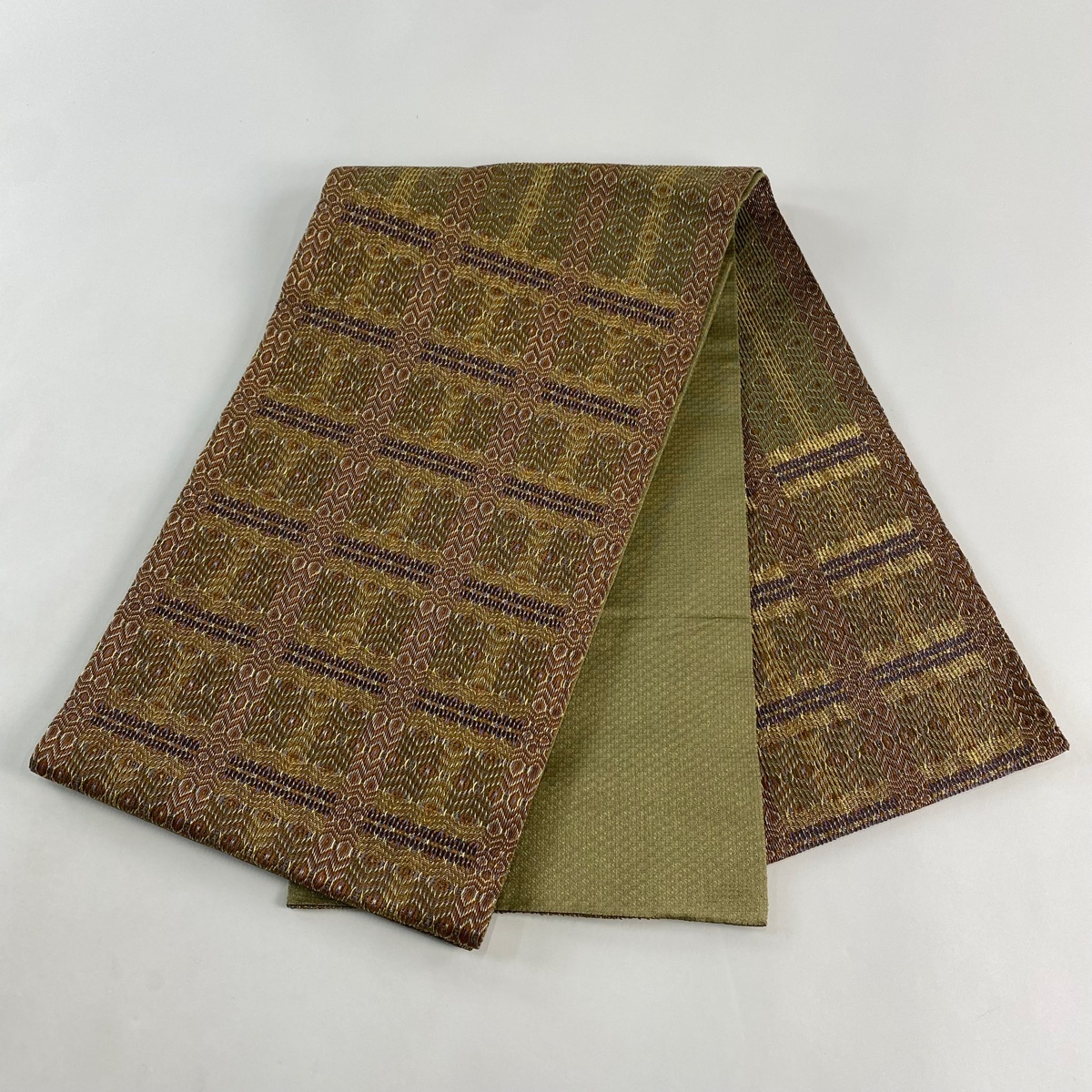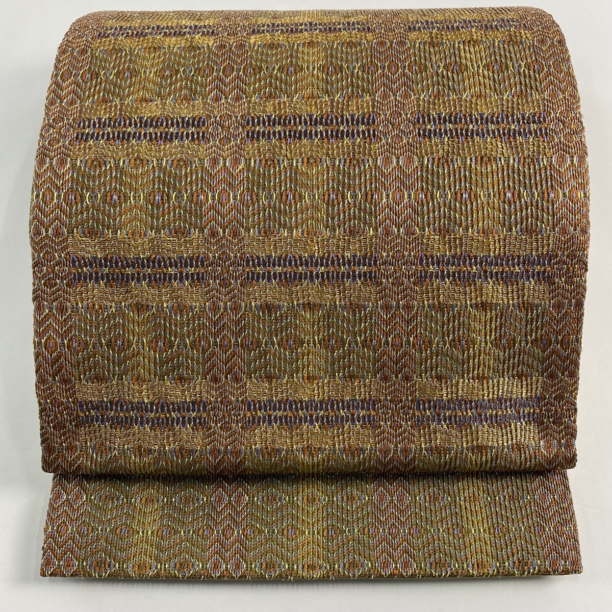 | 袋帯 美品 秀品 幾何学 金糸 茶色 お太鼓柄 正絹 【中古】 |