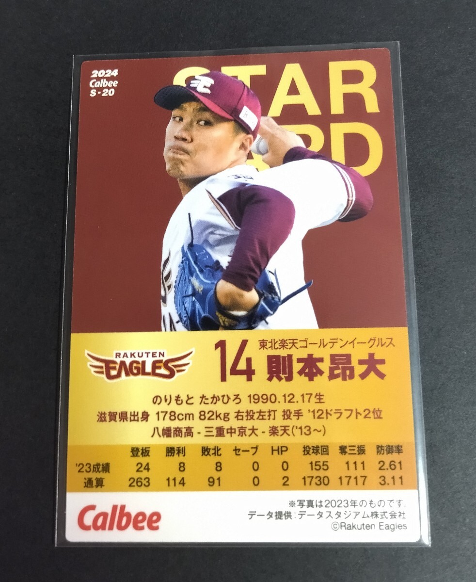 2024年カルビー 第1弾 則本昂大(楽天)スターカード!No,S-20。