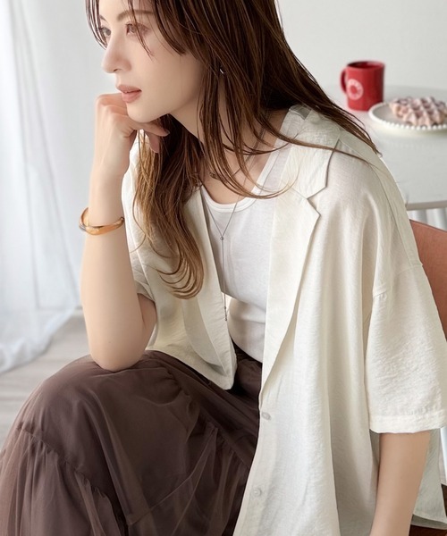 参考商品名:重ねるだけで、一気にお洒落上級者!ヴィンテージライク開襟シアーシャツ(半袖)