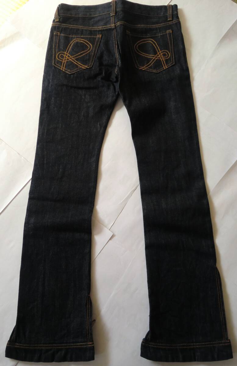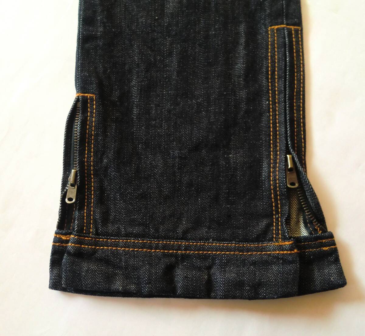 | RICO リコ デニムパンツです。 色は濃いインディゴです。 表示サイズはsです。 品番は069-1108です。 綿 100%です。 総丈(上から一番下まで)が約104cm、ウエストが(平置きで)約41cm×2、股下が約83cm、裾口が約23cm×2となっています。 30年ぐらい前にワンウォッシュとノンウォッシュで発売されたモデルだったと思います。 当方、新品でノンウォッシュを購入しました。 店員さんにかっこよく穿くには一度水洗いをしてノリを落としてから穿く方が良いと薦められたので、そのようにしました。 それから穿こうと思いましたが、他に気に入ったジーンズがあり、このジーンズは一度も穿くことも無く現在に至っています。 30年くらいタンスにて保管してありました。 このような商品ですのでこのような状態でも良い方の入札をお待ちしています。 ririジップです。 サイドジップは裾幅調節可能です。 この大人気商品がこの状態で残っているのも珍しいかと思います。 絶対お洒落です! 個人保管でタンスの中に入れていたため、たたみシワ等はあります。 画像をご覧になって判断可能な方のみ入札をお願いします。 サイズ60での発送となります。 美品ですが、見落としている部分があるかも解かりませんが、ノークレームでお願いします。 また、一度、人の手に渡っているものですので、その点はご考慮してください。 完璧を求められる方はご遠慮ください。 何か不明な点がございましたら、お気軽にお尋ねください。 最近、イタズラ入札・入金をされない等がかなり多いので、落札のご連絡の発信後、24時間以内のご連絡、 またそのあとのご入金のご案内のご連絡の発信後、48時間以内のご入金が無ければ 落札者の都合扱いでキャンセルとさせていただきます。 その場合、非常に悪いの評価が付きますのでご了承・ご理解ください。 新規の方・5以上悪い評価のある方のご入札は固くお断り致します。 万が一落札した場合でも、落札者都合で取り消す場合がありますのでご了承ください。 どうしてもご入札したい方は、事前に質問欄よりご相談下さい。 申し訳ありませんが、ご了承・ご理解・ご協力ください。 よろしくお願いします。 | |
