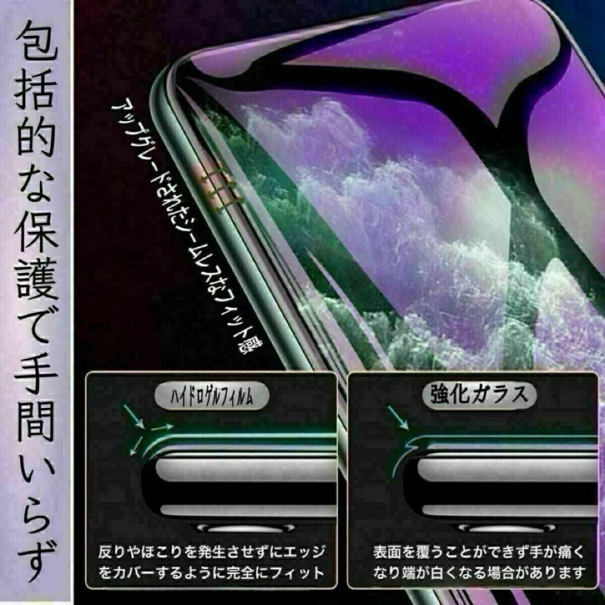 ハイドロゲル膜フィルムは、優れた透明度と耐久性を誇る保護フィルムです。iPhoneの画面を守るための必需品でありながら、ハイドロゲル膜フィルムは指紋や汚れを強力に防ぎます。指で滑らせるだけで簡単に貼り付けられ、気泡が残らない特徴があります。また、フィルムが傷ついた場合でも自己修復機能により傷を修復してくれるので、安心してご利用いただけます。ハイドロゲル膜フィルムは、強化ガラスフィルムと比較しても落下時に画面を守る柔軟性に優れています。そのため万が一の事故にも画面を守ってくれます。