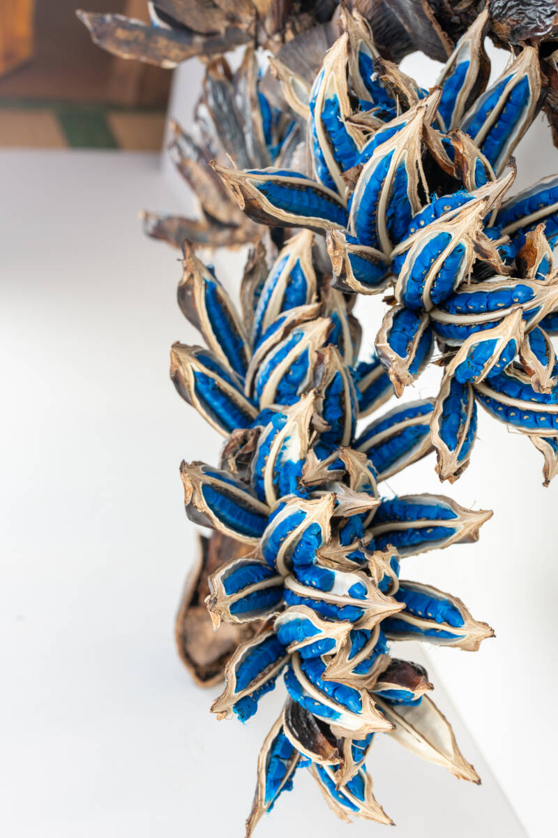 青色が綺麗なものほど種が落ちやすくなっています。刹那的な美しさを楽しんでいただけたらと思っています。