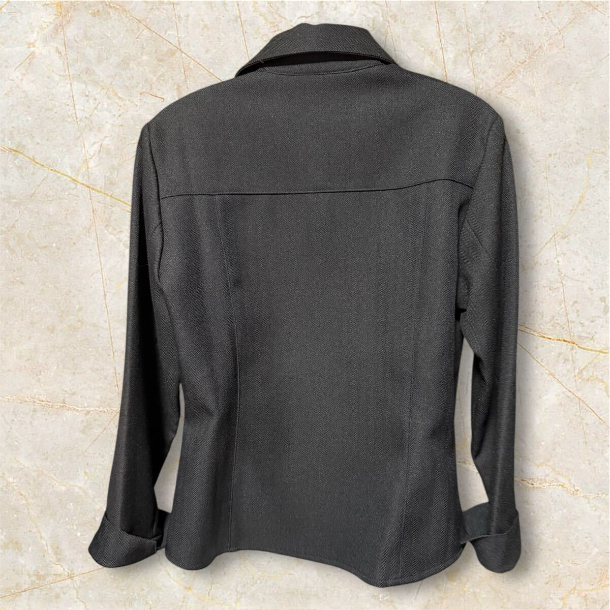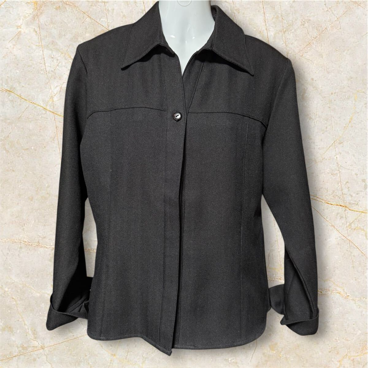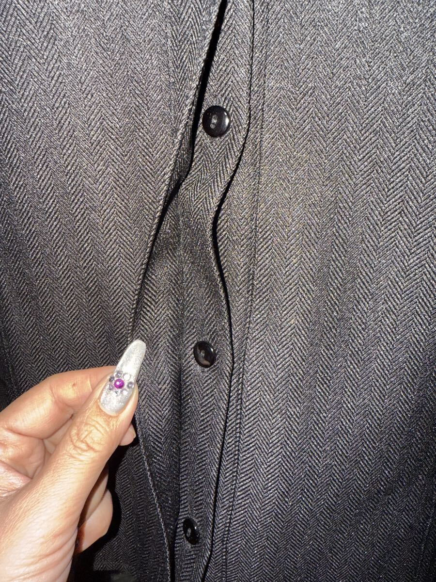 ヘリンボーン織りのシンプルな黒の厚手長袖シャツ。