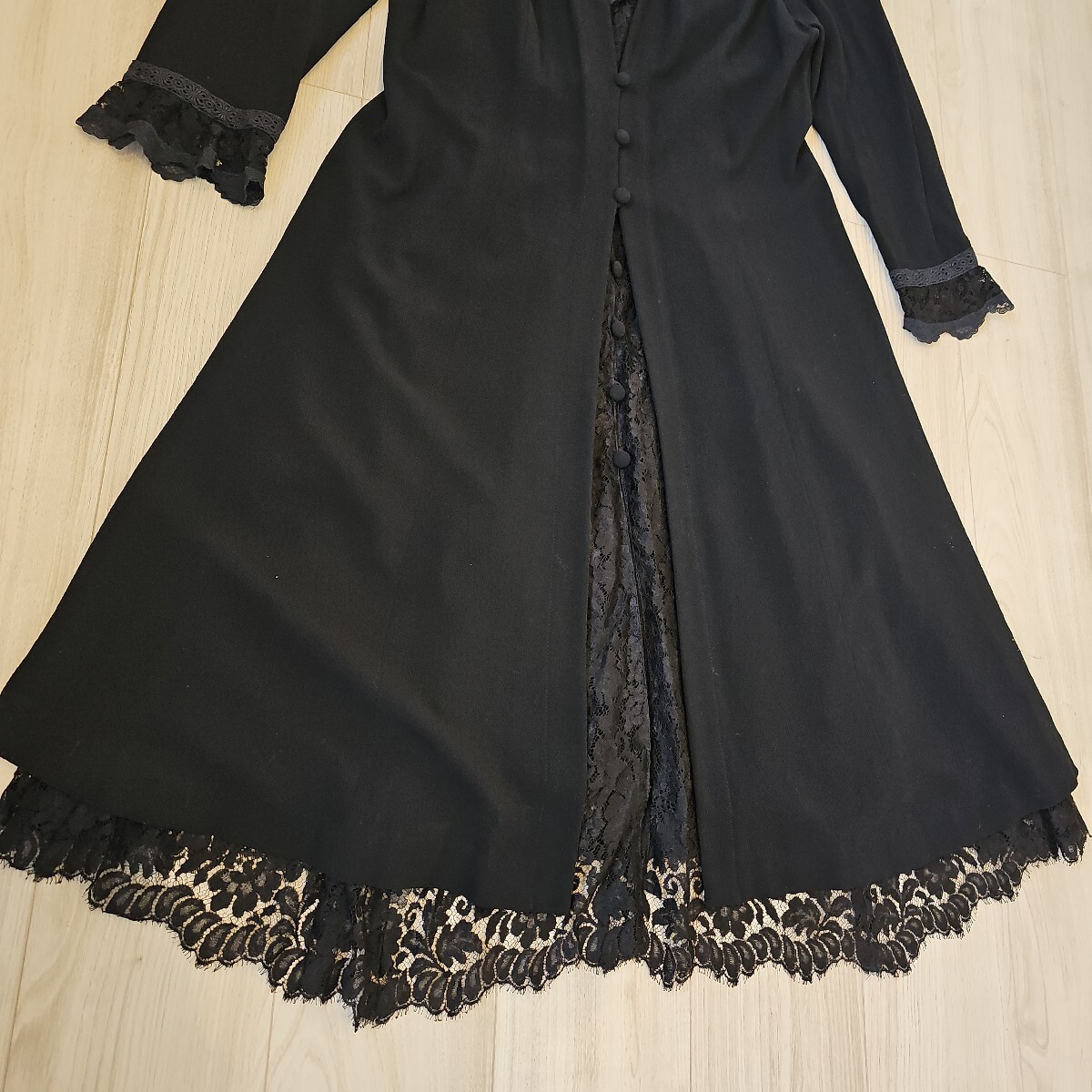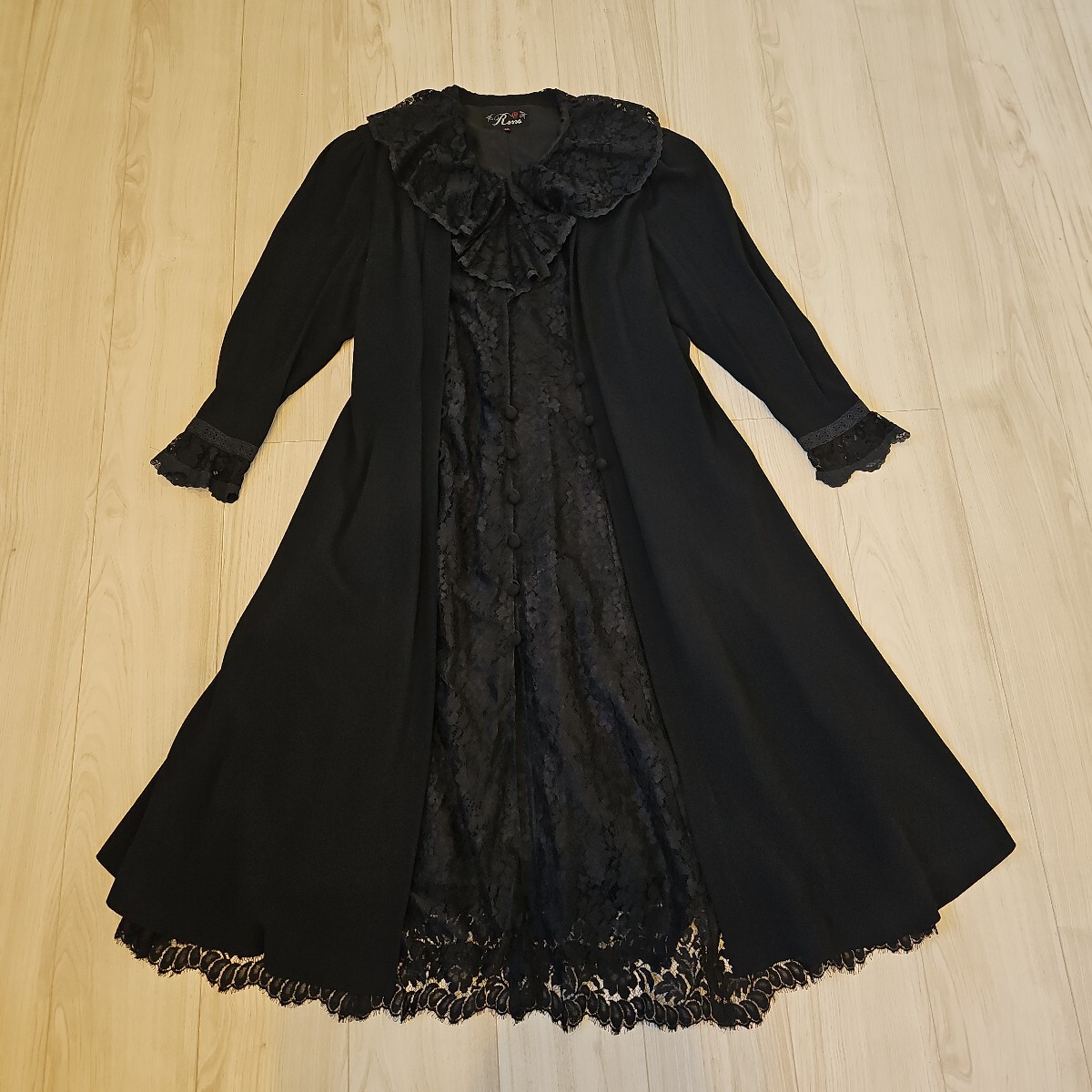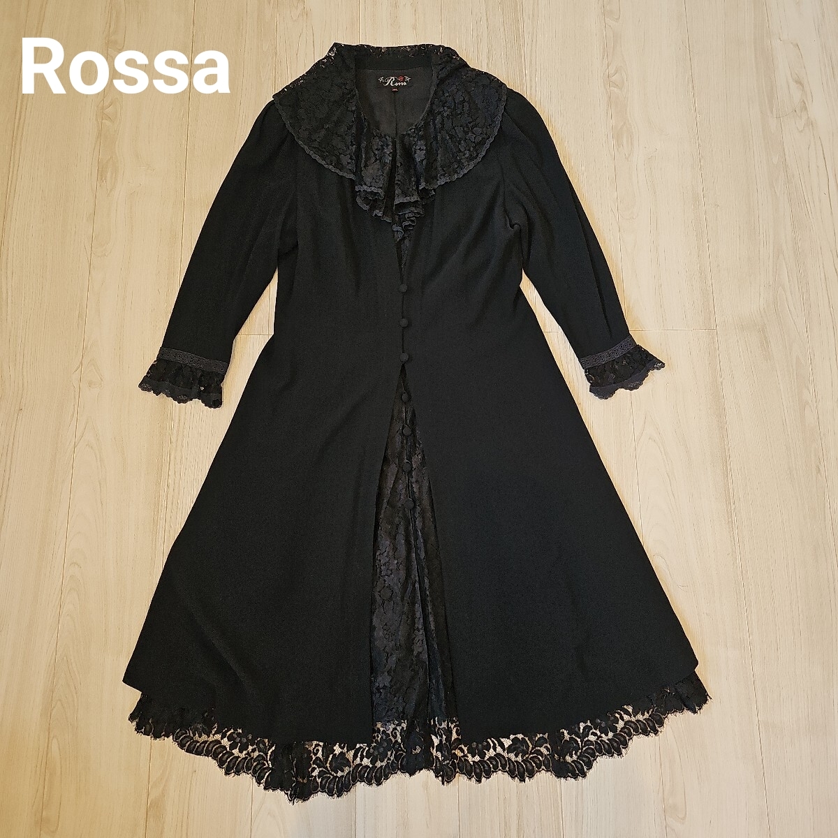 ■Rossa ロング ワンピース 黒 レース ブラック レイヤード ドレス 長袖 ガウン風 サイズ46