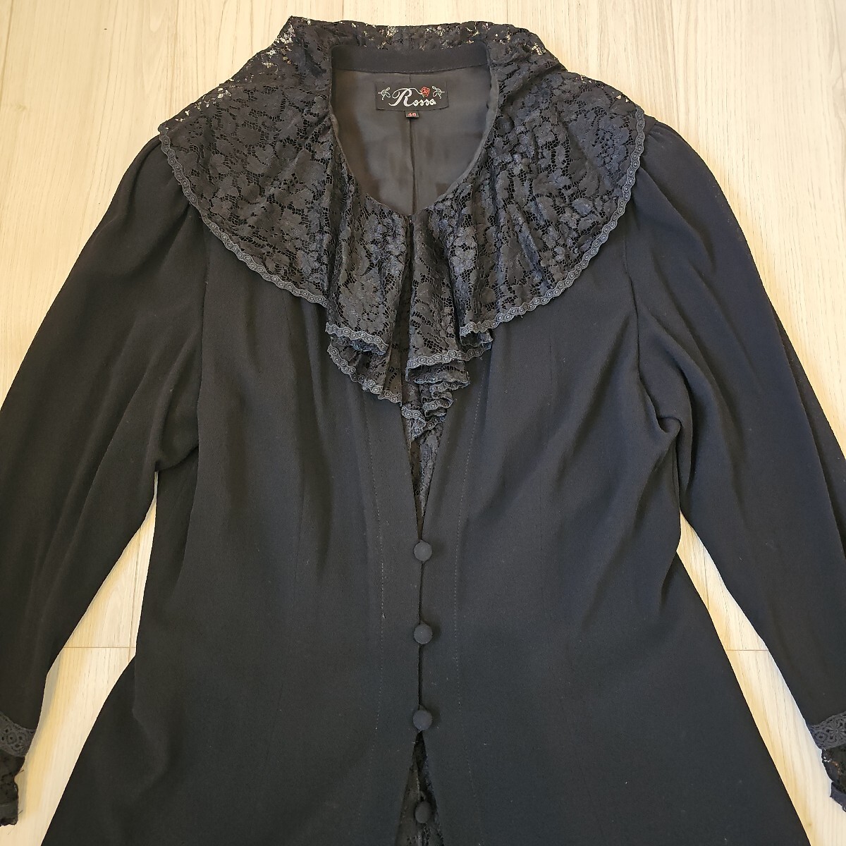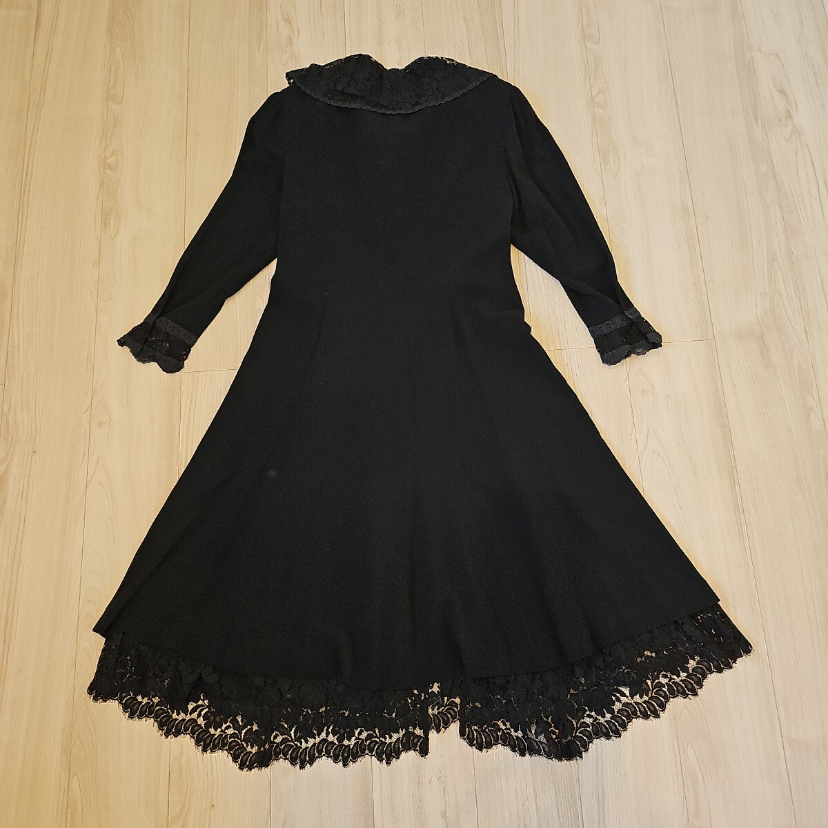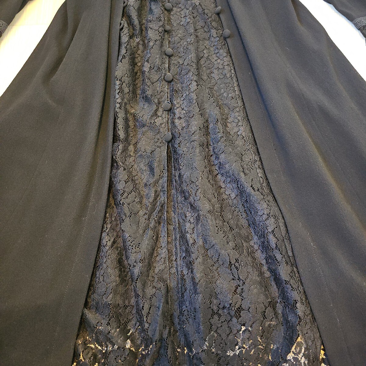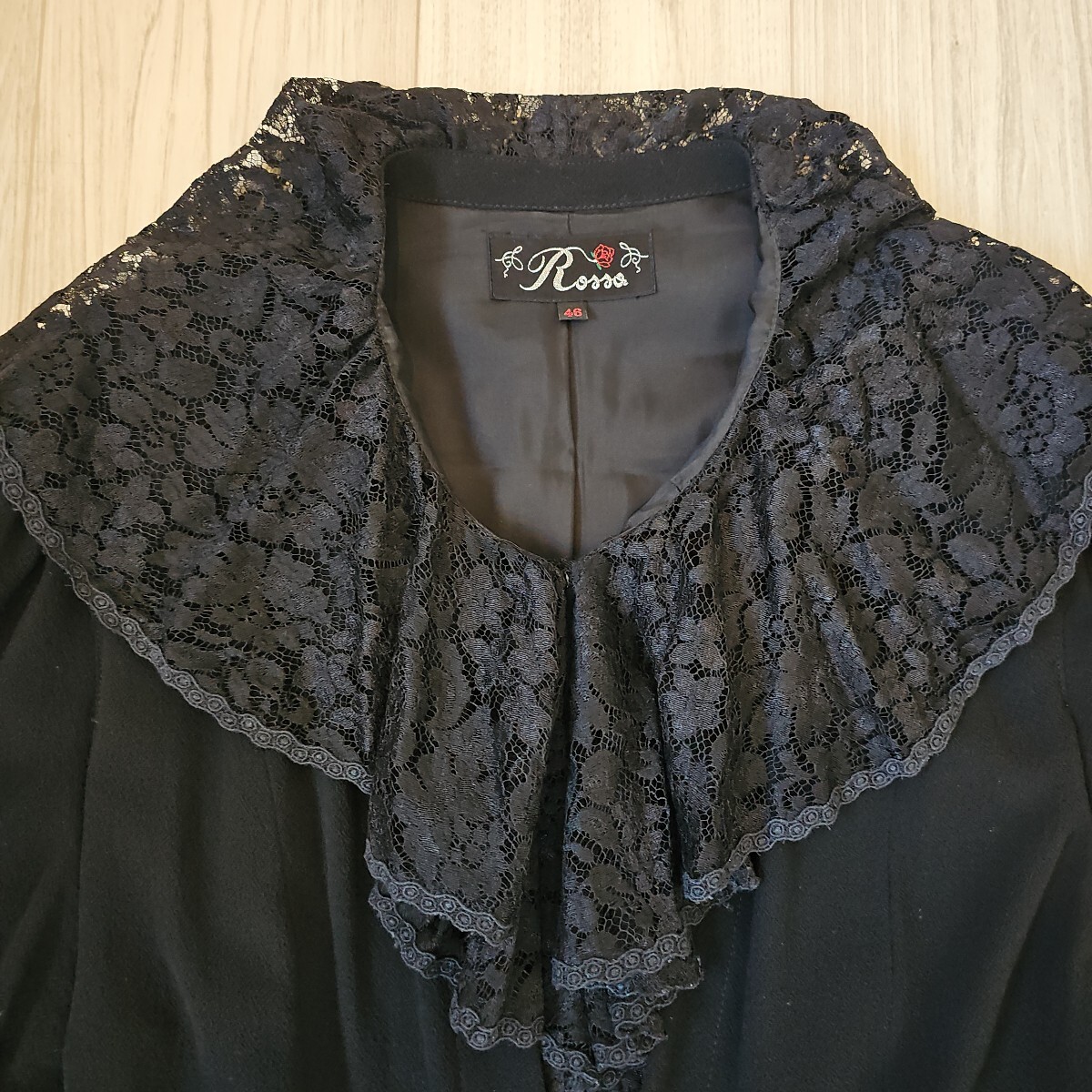 ■Rossa ロング ワンピース 黒 レース ブラック レイヤード ドレス 長袖 ガウン風 サイズ46