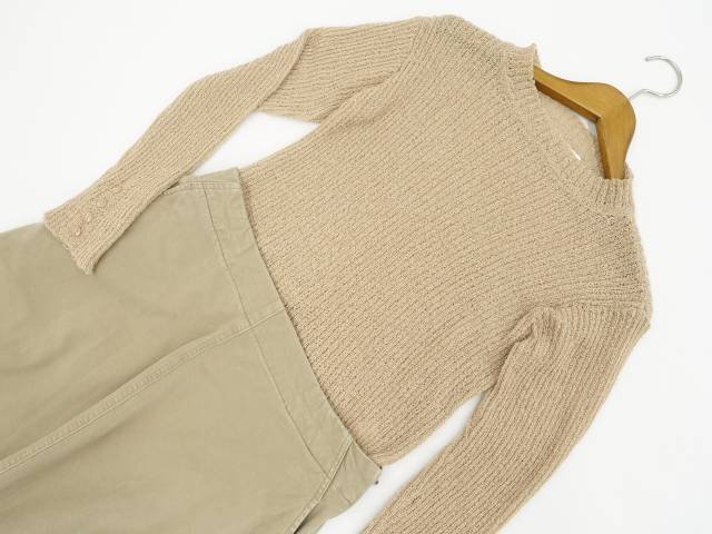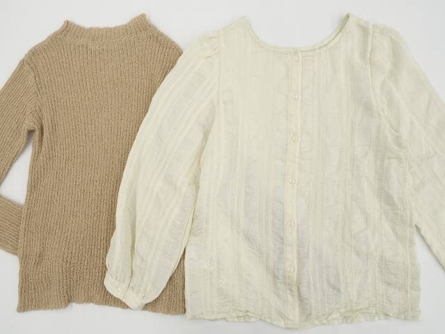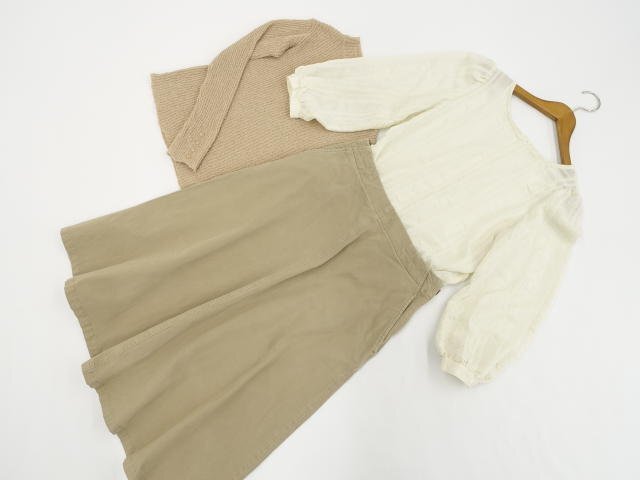 洗える長袖ブラウス+長袖ニットカットソー+ロング丈台形スカート コーディネート上下3点セット L相当 アイボリー ストライプ/ベージュ カジュアル系 20代~