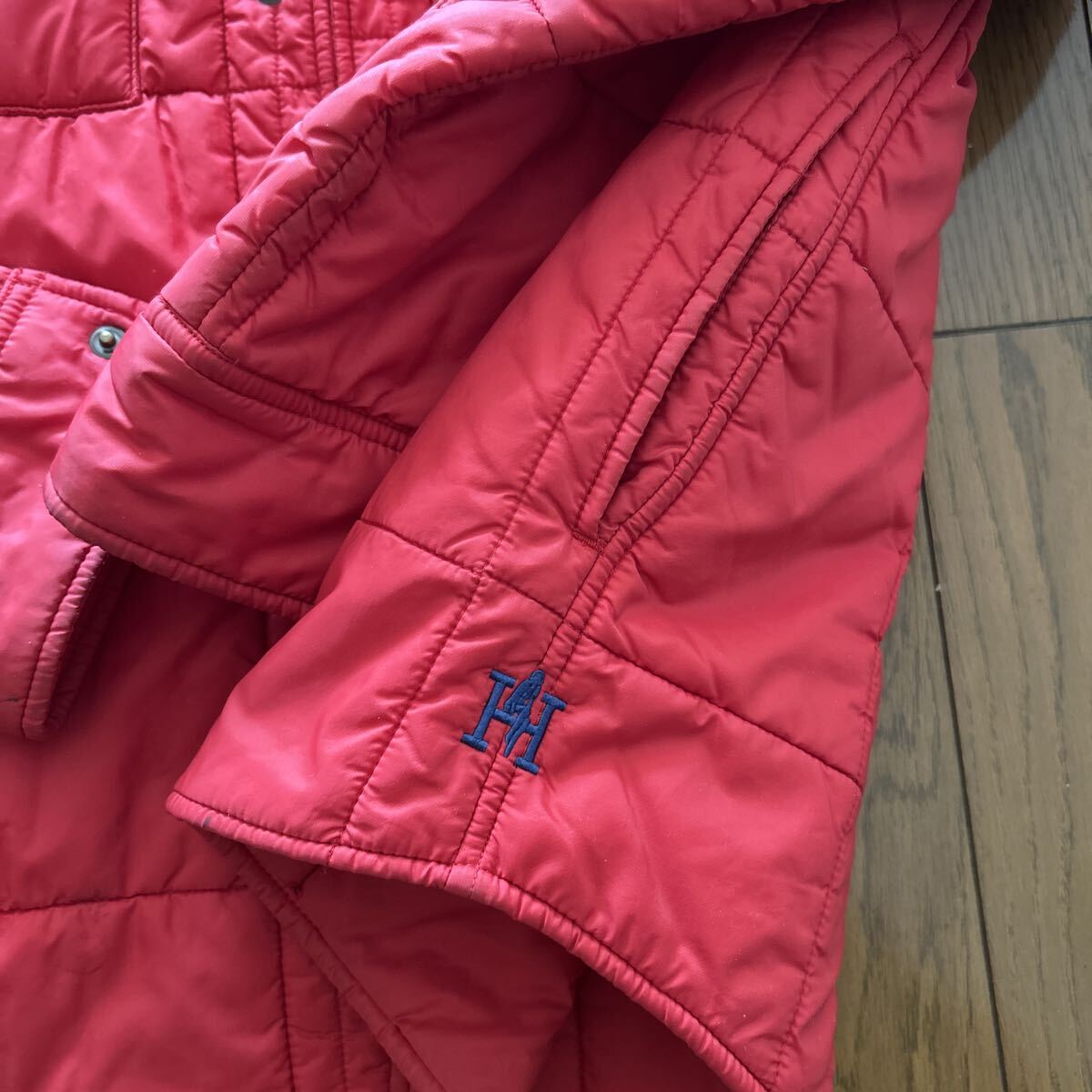 ご覧の通りのお品です。前に頂き、2か月程使用して、倉庫保管。機能上大きな問題無いと思いますが、経年変化や小さな傷みなどは個人差がございます。写真等でご確認の上、ノークレームノーリターンで細かいところ気にされる方は入札ご遠慮ください。着丈70身幅53袖丈64センチ素人採寸です。シルエットが、イカしてます。色は上品な赤です。