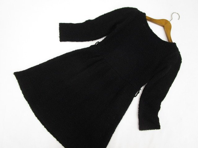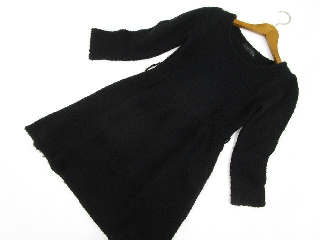ひざ丈 長袖 ボートネック ニットワンピース ブラック