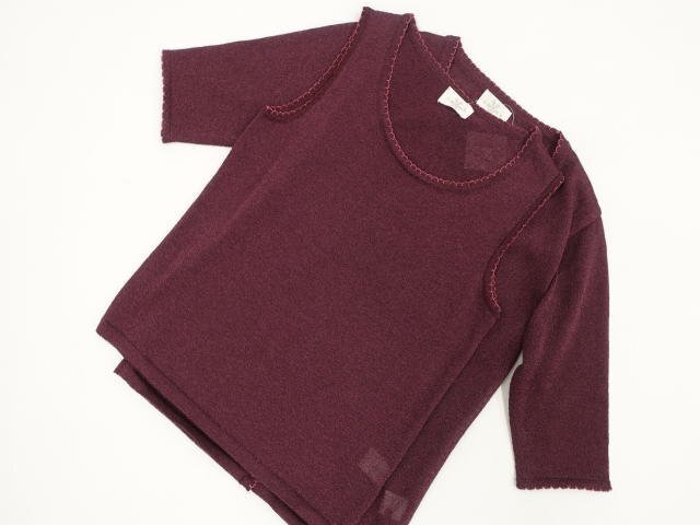 洗える五分袖カーディガン+タンクトップ ニットアンサンブル2点セット M バーガンディ ピンクラメ 【メール便可】