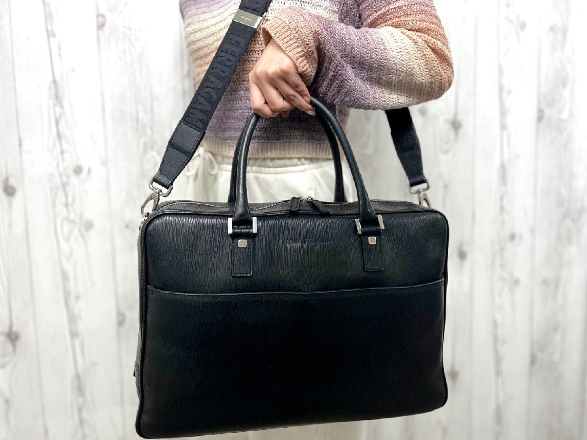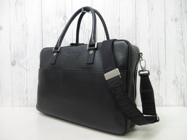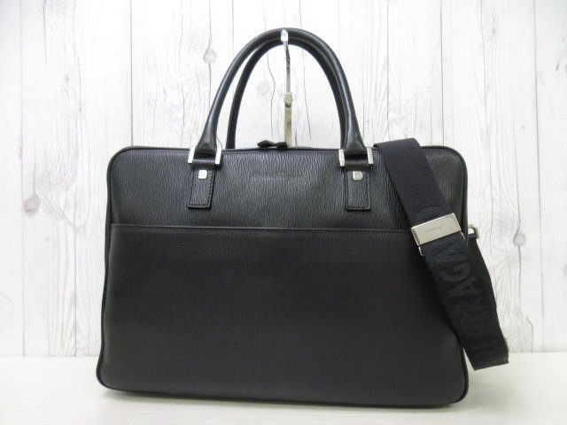 | 極美品 Ferragamo フェラガモ ビジネスバッグ ショルダーバッグ バッグ レザー 黒 A4収納可 2WAY メンズ 91629 | ||