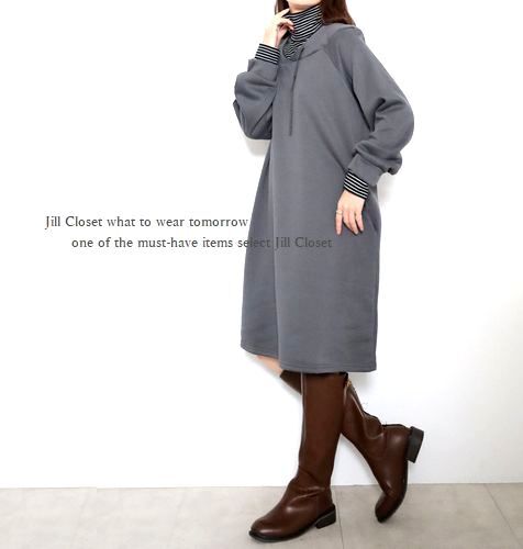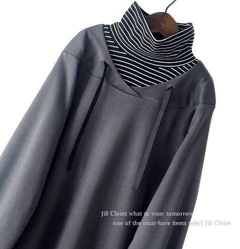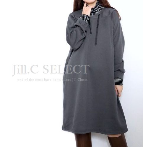 新品【送料185円】伸縮◎レイヤード風 あたたかい裏薄起毛 ストレッチ素材*スタイルカバー*プルオーバー*チュニック*ワンピース7743.GRAY