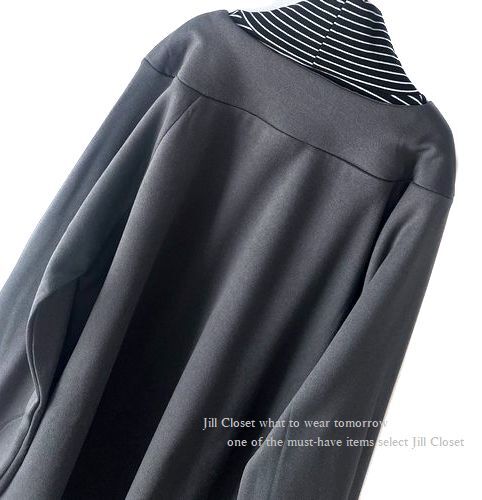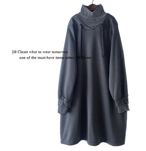 もっちり柔らかな裏薄起毛エステルストレッチ素材。しっかりスタイルカバーも叶う優秀アイテム。お顔周りまでほっこり暖かく重ね着したようなお洒落なデザインが自慢♪落ち着いた配色で幅広い世代の方にお奨めです。パンツスタイツとの相性抜群です。飾りリボン(紐)のアクセントも素敵です^^