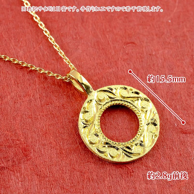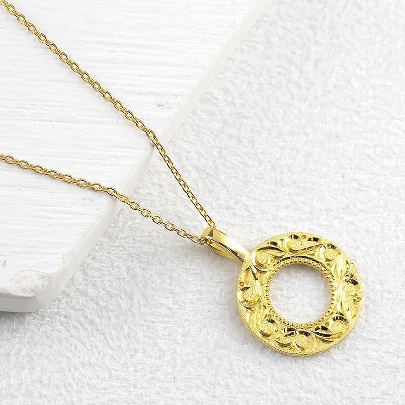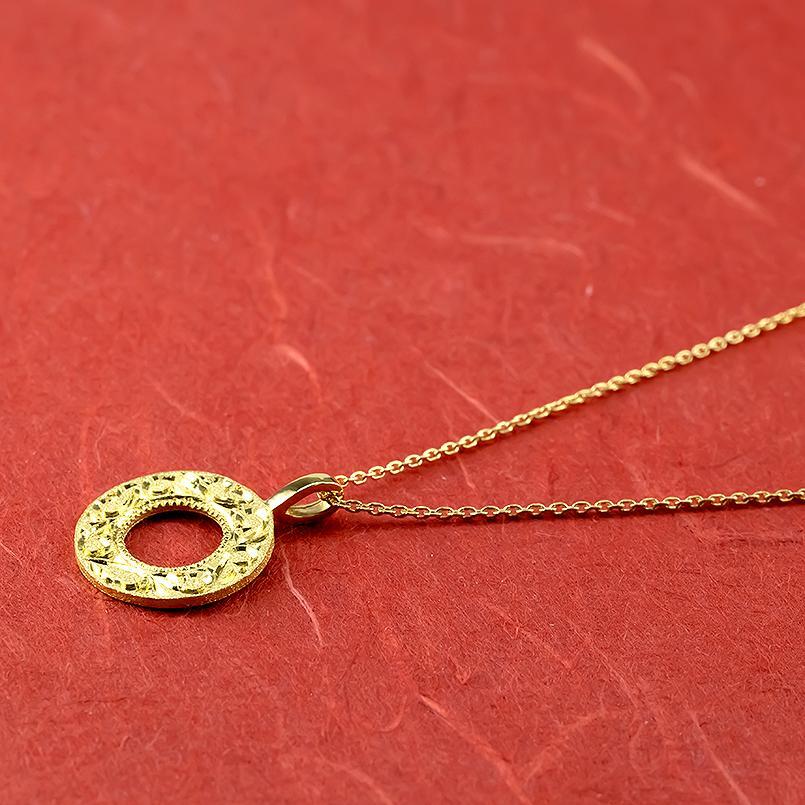 純金 ネックレス 24金 ゴールド 24K ペンダント k24 地金 サークル 円 リング ミル打ち 手彫り アンティーク メンズ プレゼント 贈り物 アレルギーフリー 縁起物 ユニセックス バディジュエリー 福袋 30代 40代 50代
