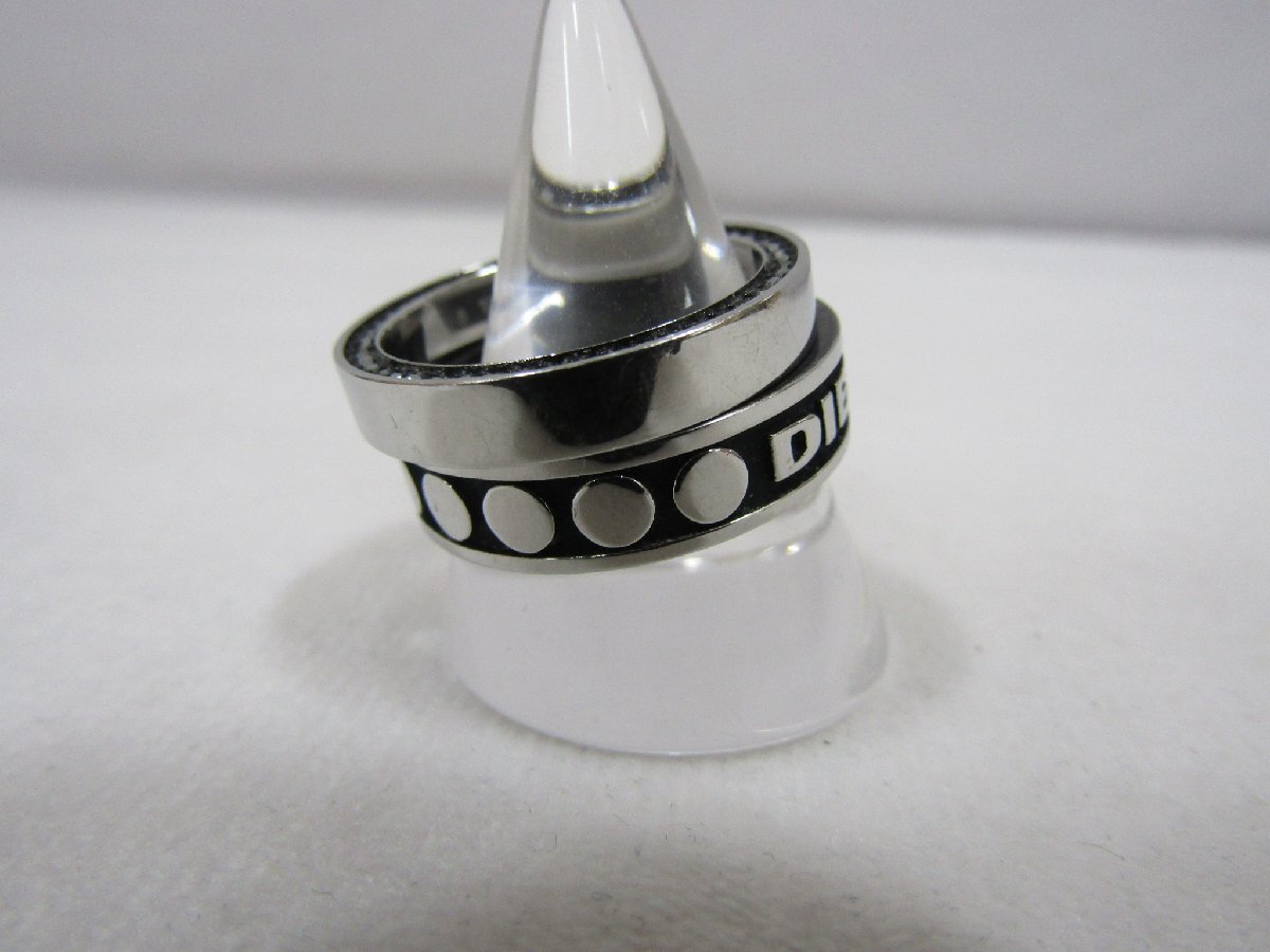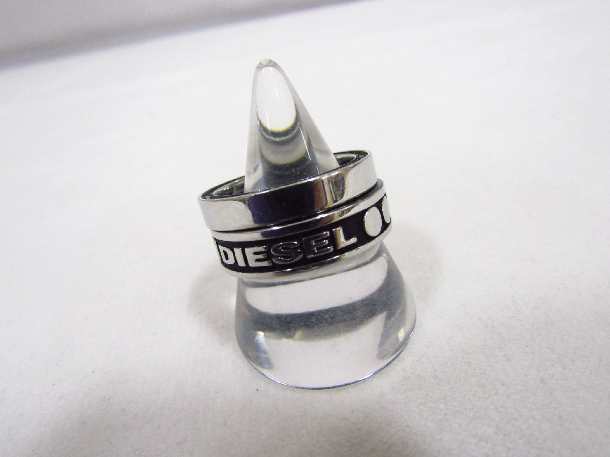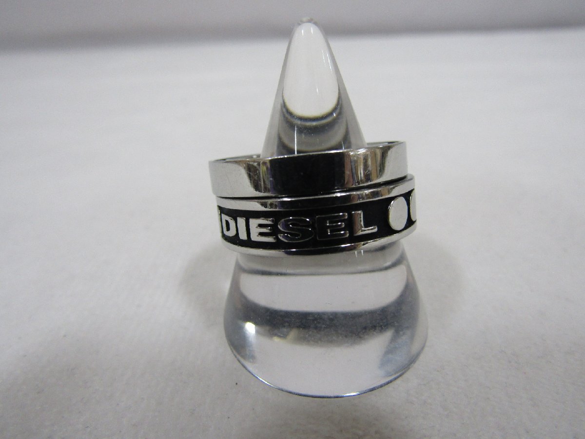 DIESEL ディーゼル 2連リング 指輪 19号 シルバー×ブラック アクセサリー 中古品★140870 | |||||||