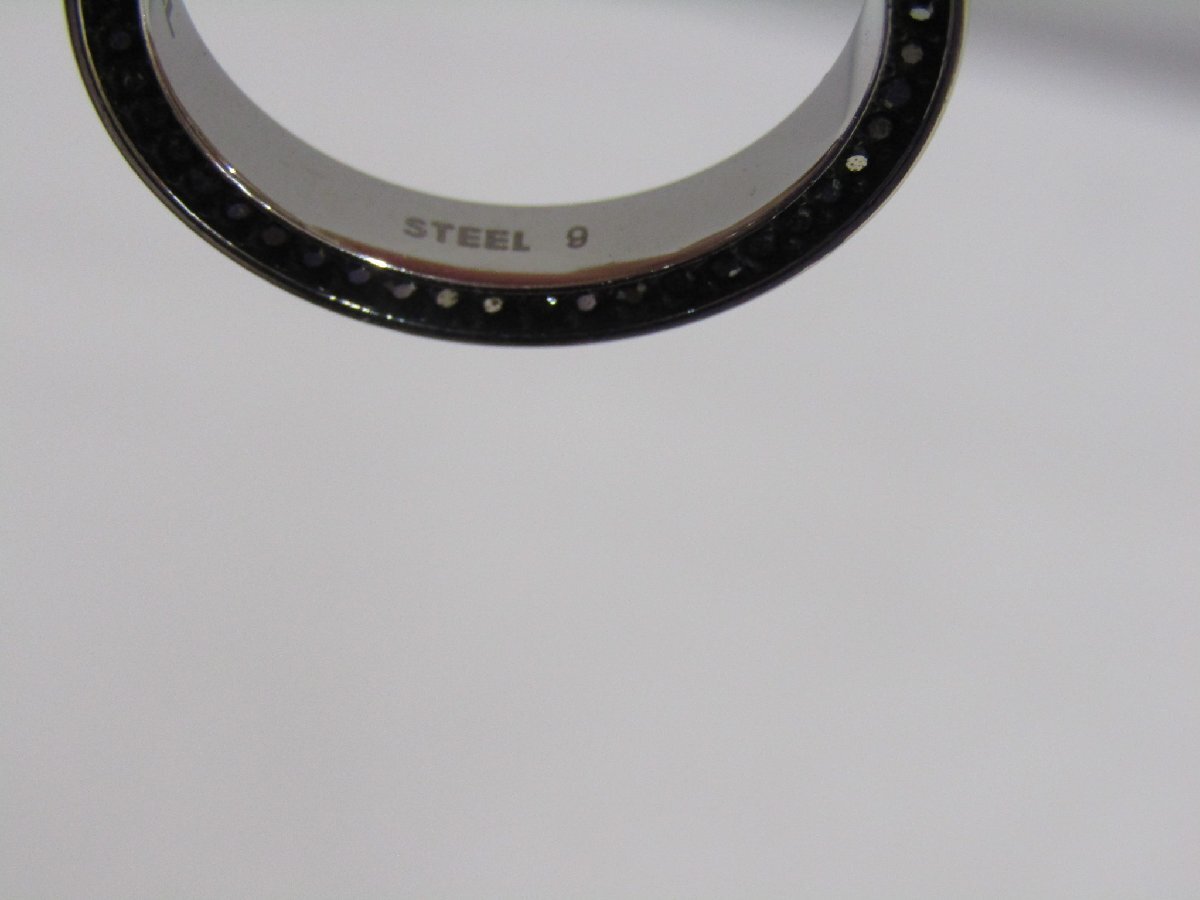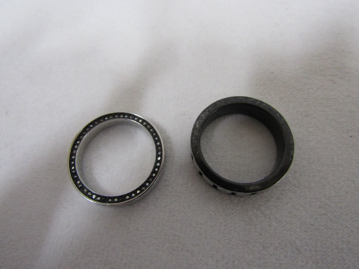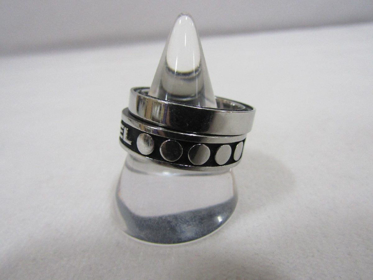 DIESEL ディーゼル 2連リング 指輪 19号 シルバー×ブラック アクセサリー 中古品★140870 | |||||||
